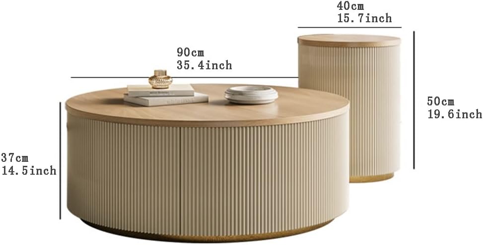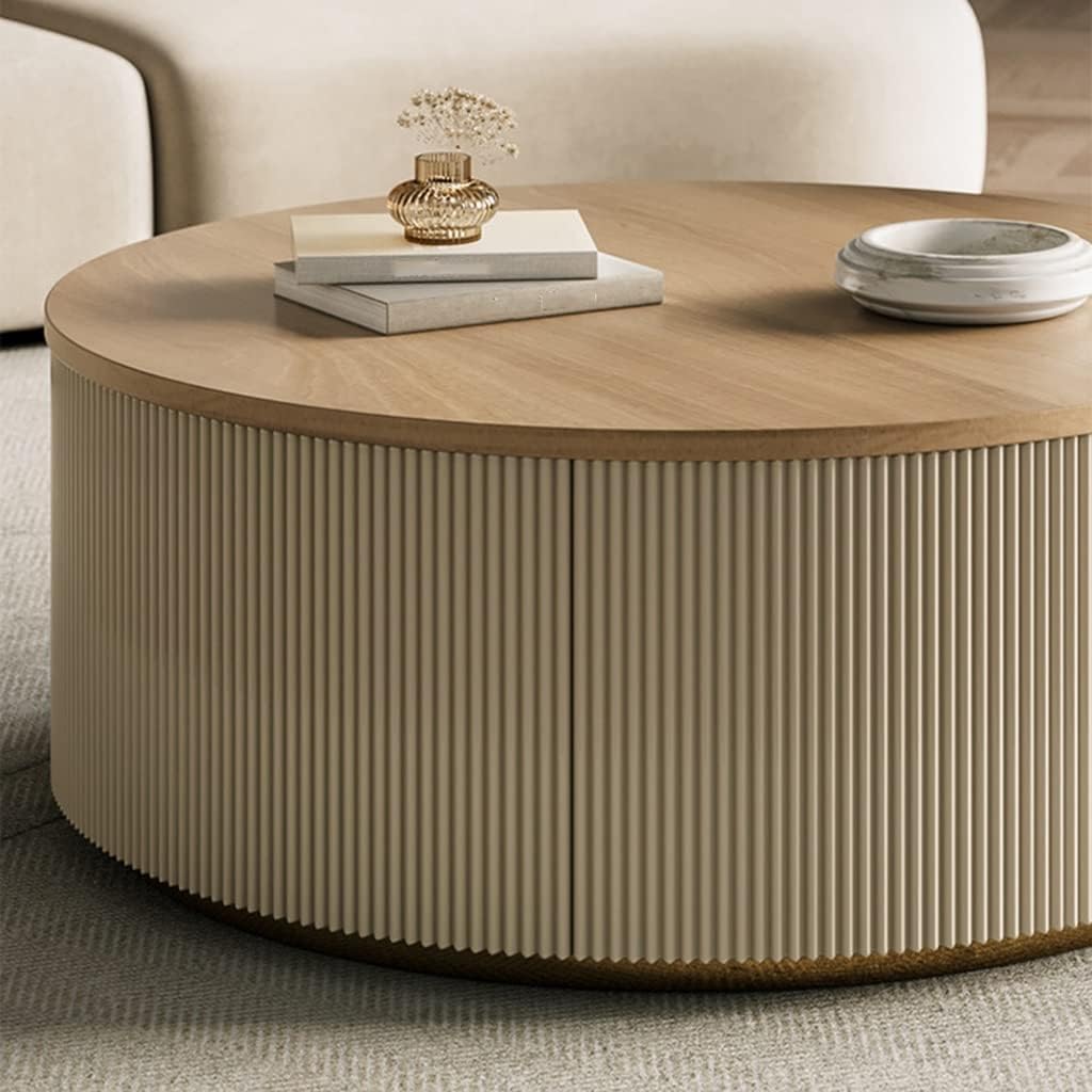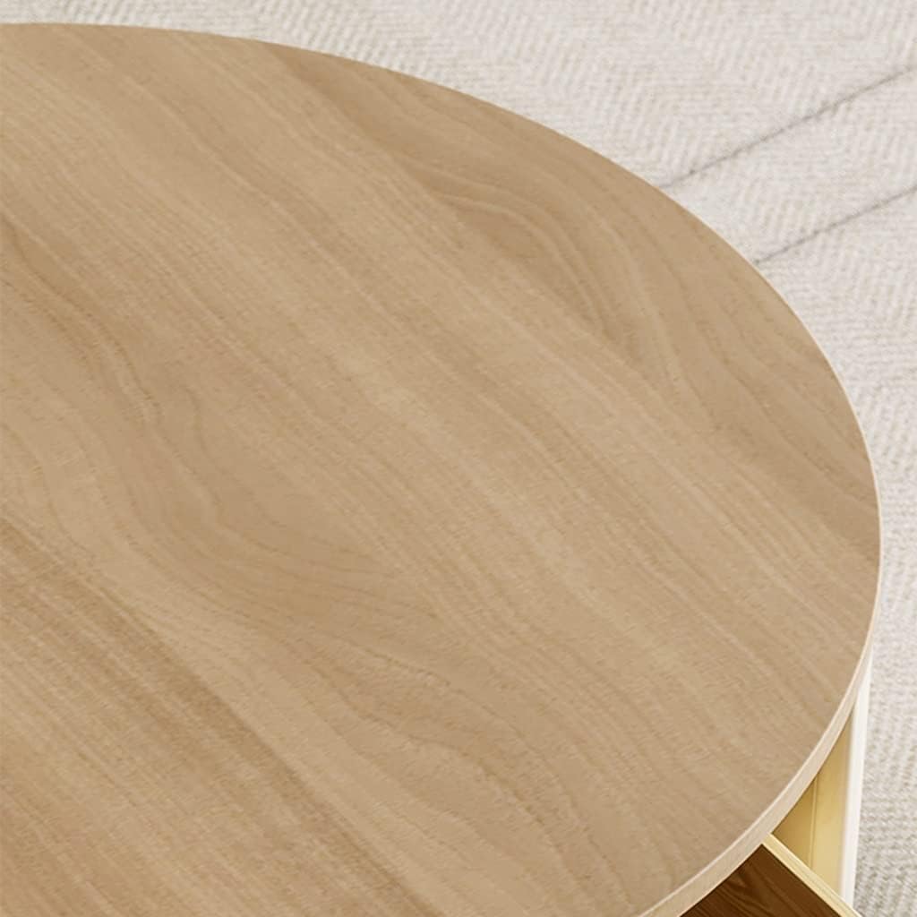 Solid Wood Coffee Table Modern Rounded Table Top 2 Drawers Minimalist Creative Simple Household Living Room Small House