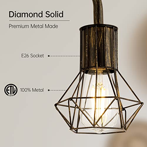 Industrial Floor Lamp, Standing Lamp, Farmhouse Tree Floor Lamp with 3pcs 6W Edison Bulbs, Free Adjustable Cage Heads, Independent Control, Floor Lamp for Living Room, Bedroom, Office, Rustic Home