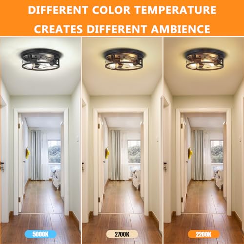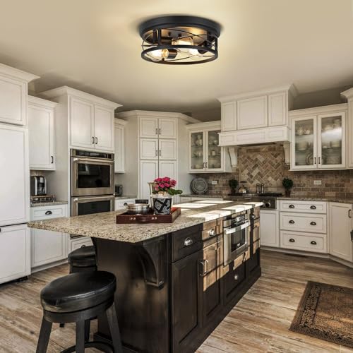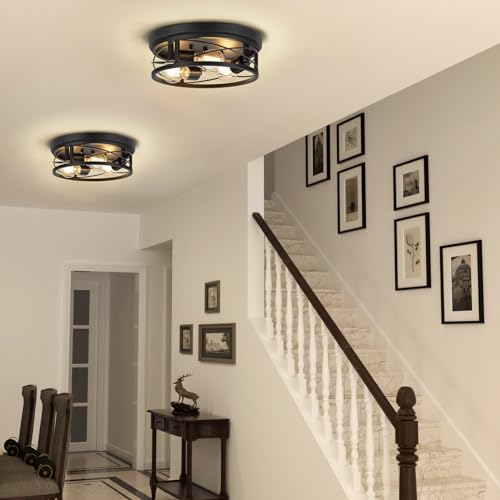 Flush Mount Ceiling Light Fixture, Black 3-Light Hallway Light Fixtures Ceiling, Light Fixtures Ceiling Mount for Farmhouse, Kitchen, Living Room (2 Pack, A19 LED Bulbs Included)