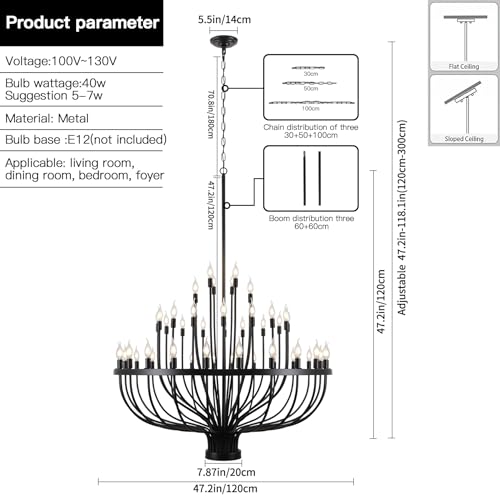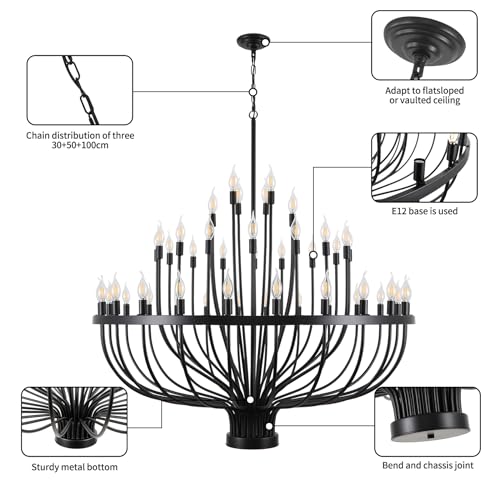 Black Chandelier 48 Light, Modern Farmhouse Chandelier for Dining Room, Round Industrial Candle Chandeliers Light, Wagon Wheel Chandelier 3-Tier 47.2 in for Hallway, Living Room, Foyer