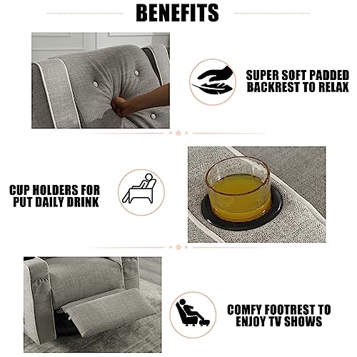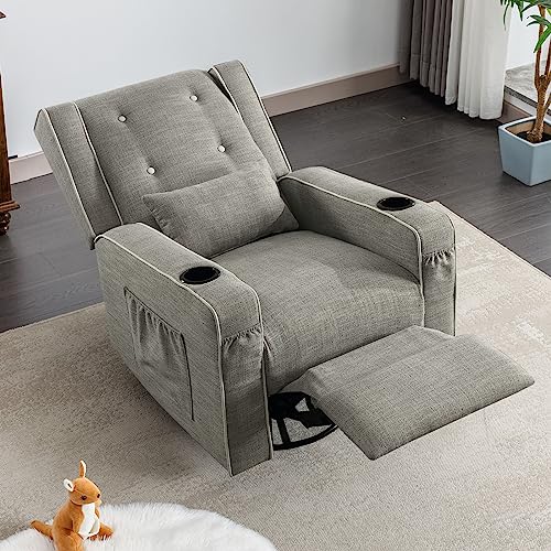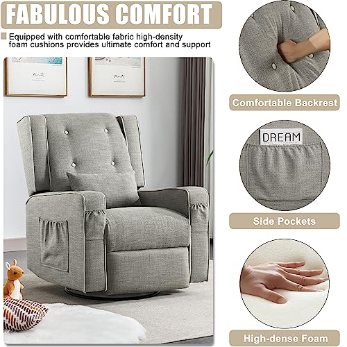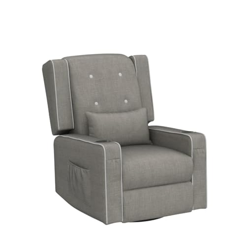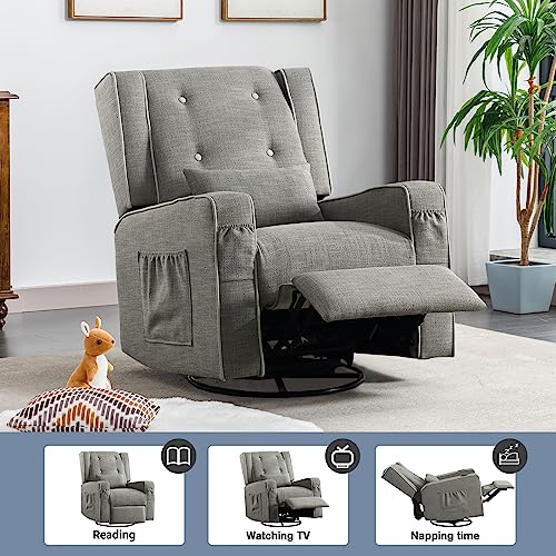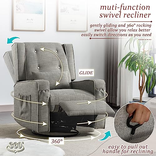360° Nursery Swivel Recliner Chair Manual Swivel Rocker Recliner Chair Overstuffed Wingback Glider Chair w/Side Pockets/Cup Holders (Blue Gray)