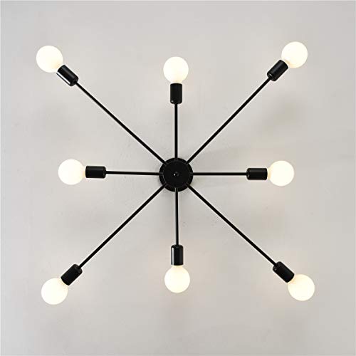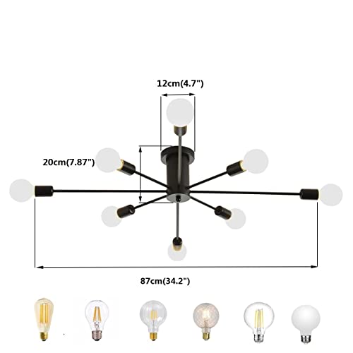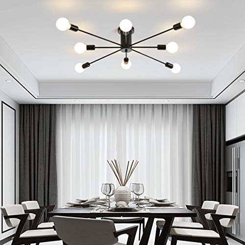 Garwarm 8-Light Sputnik Chandelier Black Industrial Semi Flush Mount Ceiling Light Fixture Mid Century Modern Pendant Light for Kitchen Farmhouse Living Room