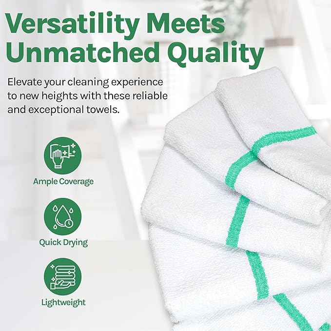 60 Commercial Grade All Purpose 16x19 Bulk Bar Mop Towels 31oz for Home Kitchen, Bar, Restaurant (Green Stripe)