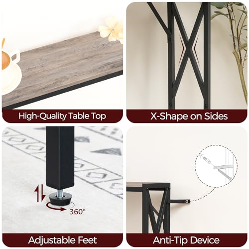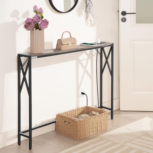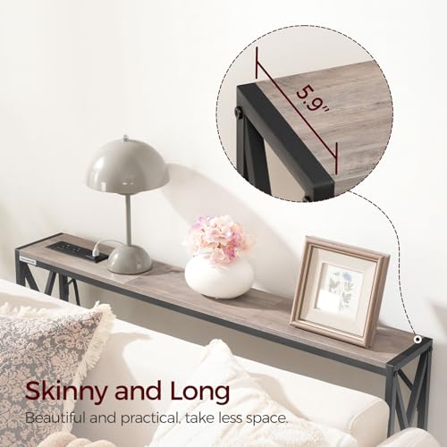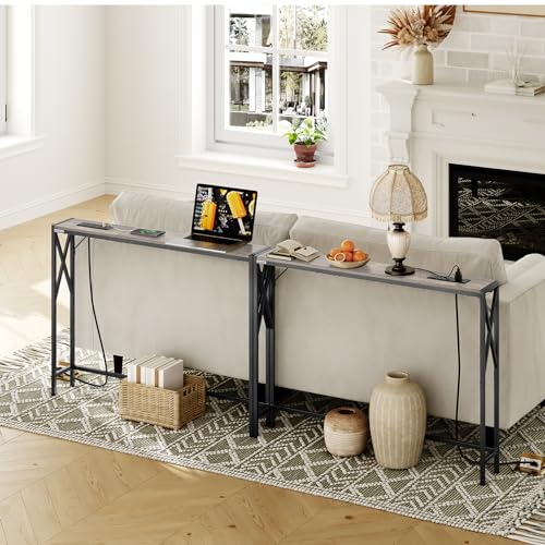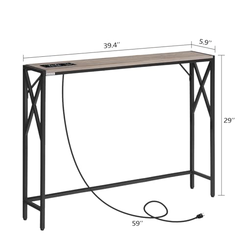 2 Pack Sofa Table with Charging Station, 39.4” Console Table, Narrow Entryway Table, Slim Hallway Table, Retro Couch Table, for Entrance, Foyer, Living Room, Hallway, Greige CTHG151E01S2