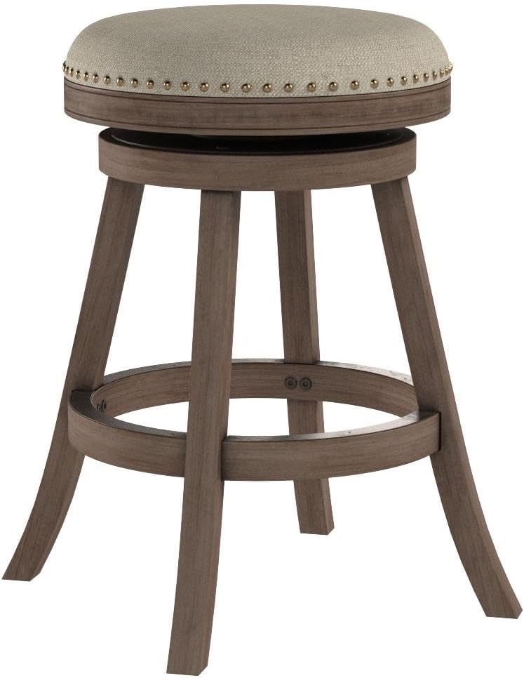 Cortesi Home Sadie Backless Swivel Counter Stool in Solid Wood & Beige Fabric, 25"
