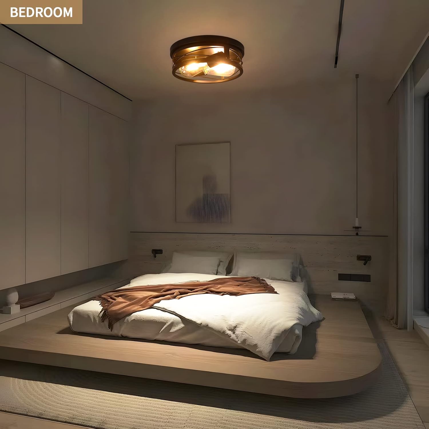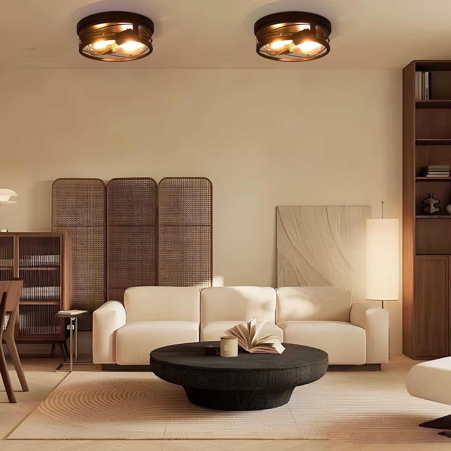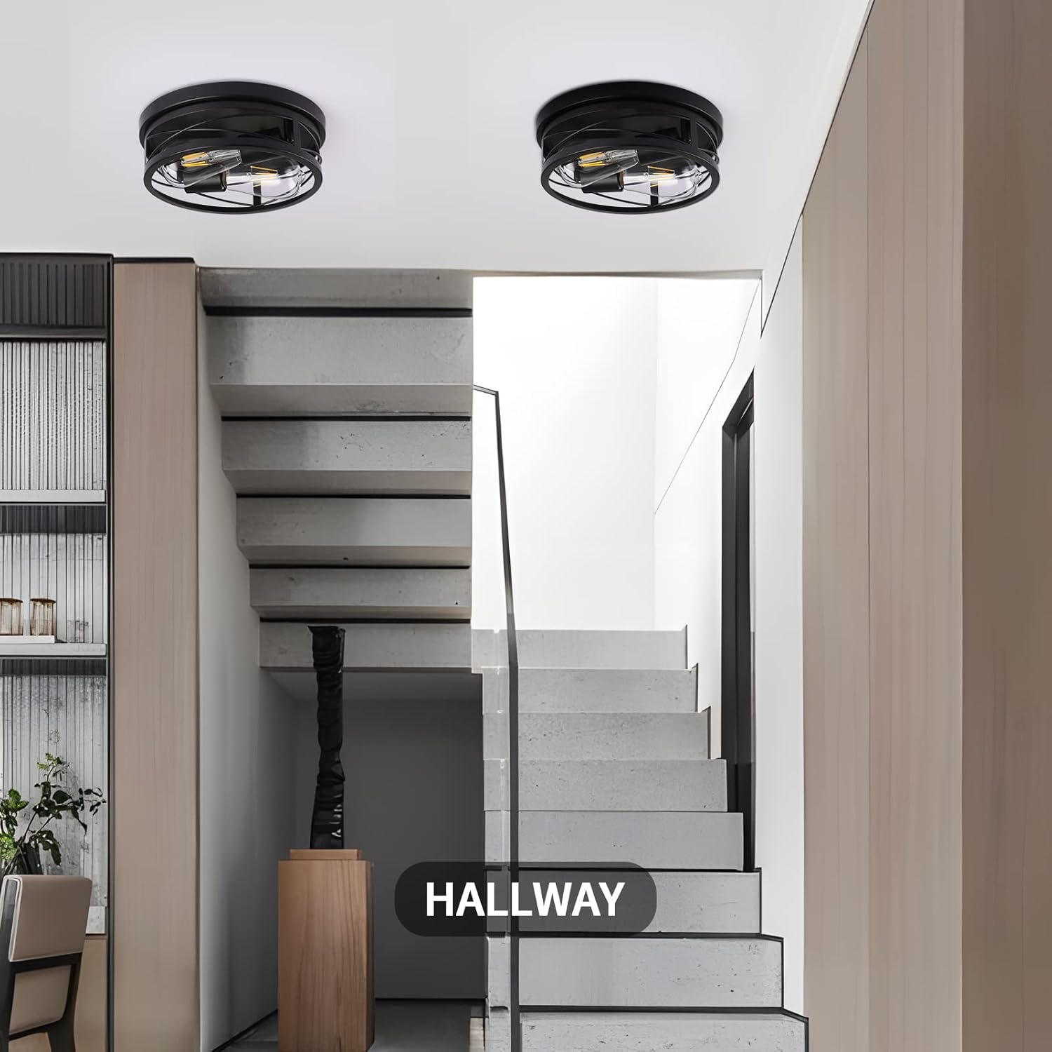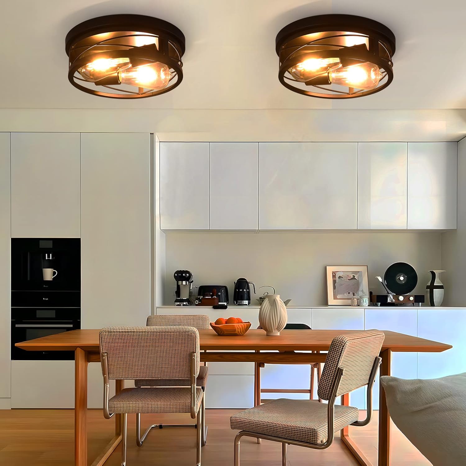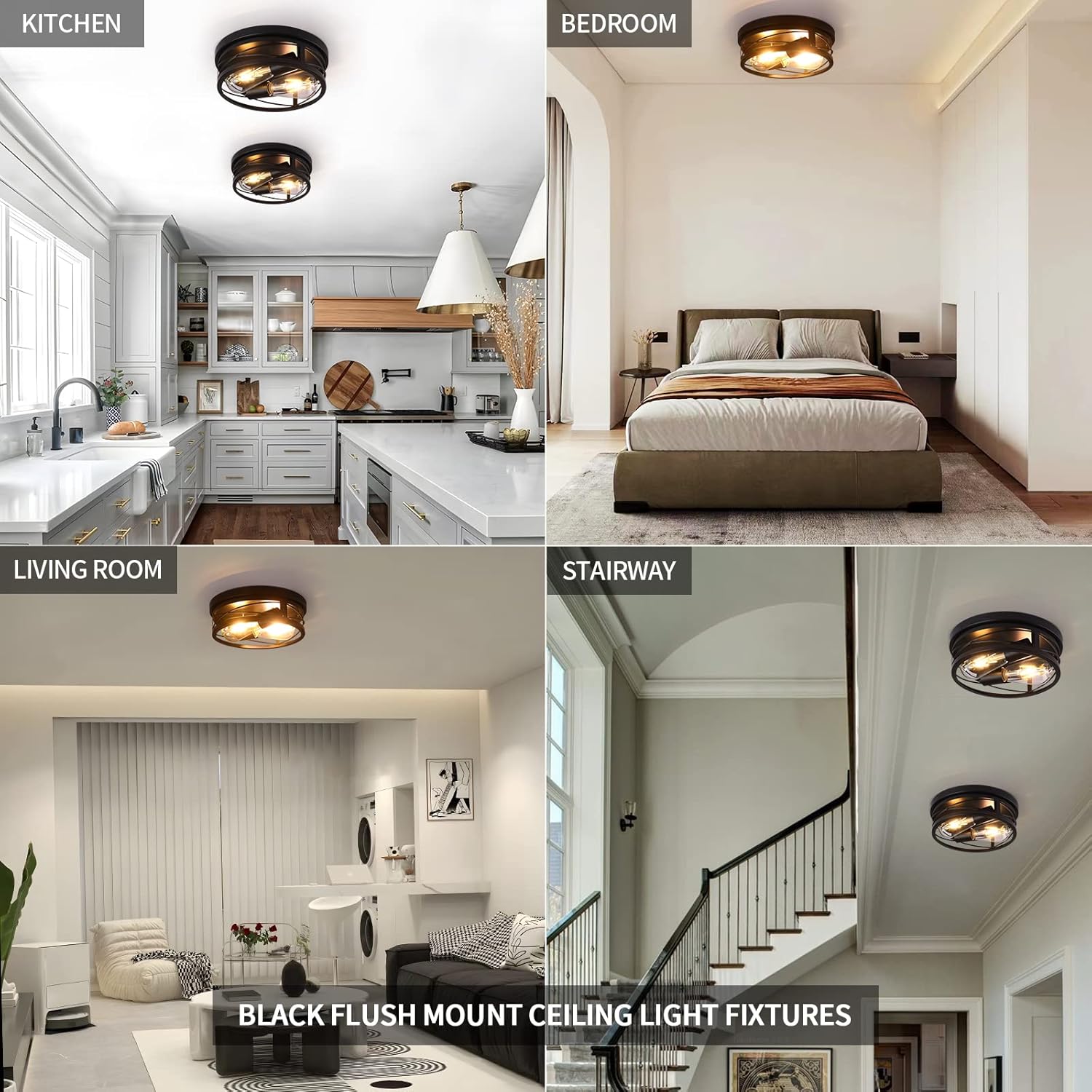 Farmhouse Flush Mount Ceiling Light Black Ceiling Light Fixtures 2 Pack Industrial Flush Mount Ceiling Light for Hallway, Kitchen, Foyer, Bedroom Living Room Laundry