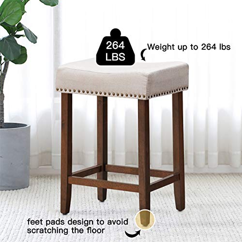 Hysache Bar Stools Sets of 2, 24'' Counter Height Bar Chairs w/Footrest, Non-Slipping Pads, Large Seat Filled with Sponge, Linen Fabric Counter Stool for Living Room Party (Gray, 24''), (HW66008)