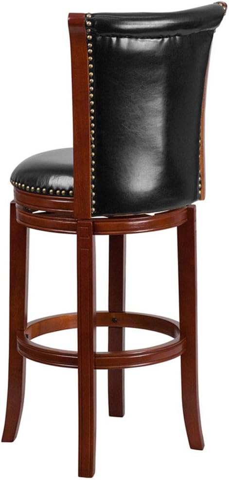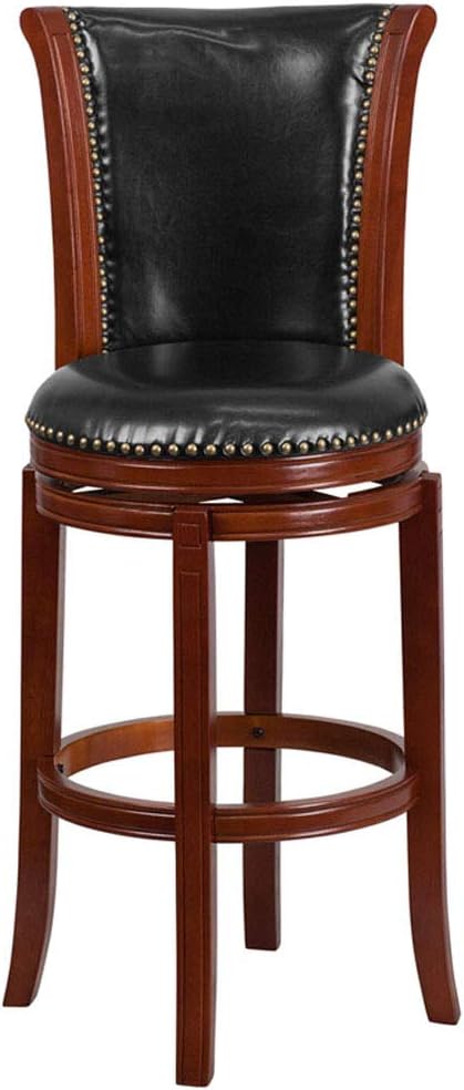 Flash Furniture Vestina 30'' High Dark Chestnut Wood Barstool with Panel Back and Black LeatherSoft Swivel Seat