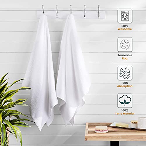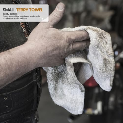 Terry Rags 10lb Bulk White Towel Rag Multipurpose 12x12 Inches100% Cotton Cleaning Solution Super Absorbent Lint Free (White, 10lb)