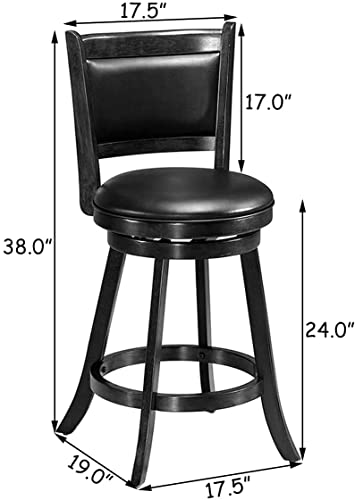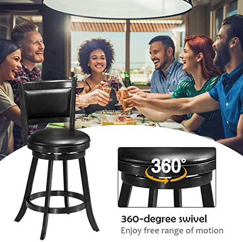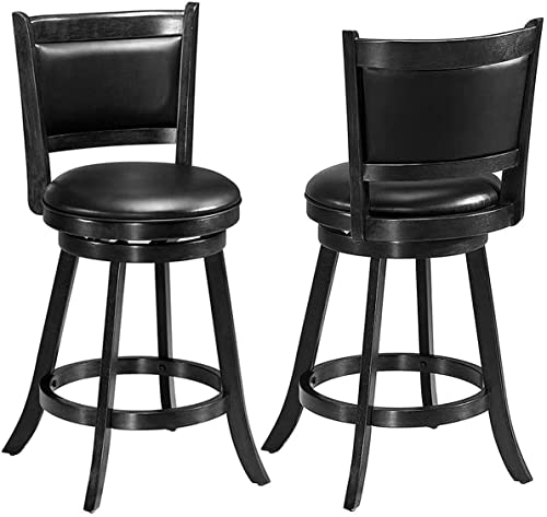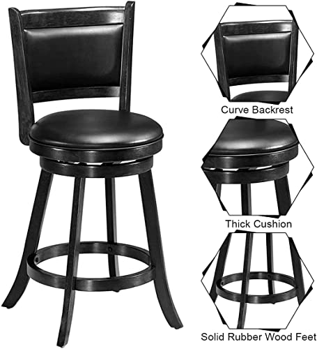 Hysache Bar Stools Sets of 2, Wooden Swivel Counter Height Chairs w/Footrest, PVC Cushioned Seat, 360° Swivel Kitchen Stool, Ideal for Dining Room, Living Room, Kitchen (Black, 29" Height)