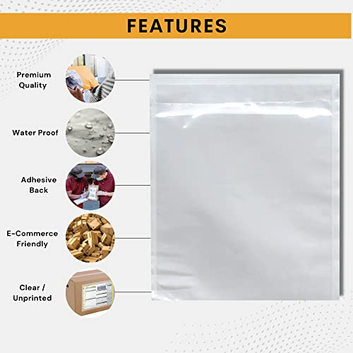 300 Pack 7"x10" Shipping Label Sleeves - Packing Slip Envelope Pouches with Self-Adhesive Peel & Seal - Clear Unprinted Plastic & Waterproof Mailing List Holder Ideal for Invoice, Documents & Labels