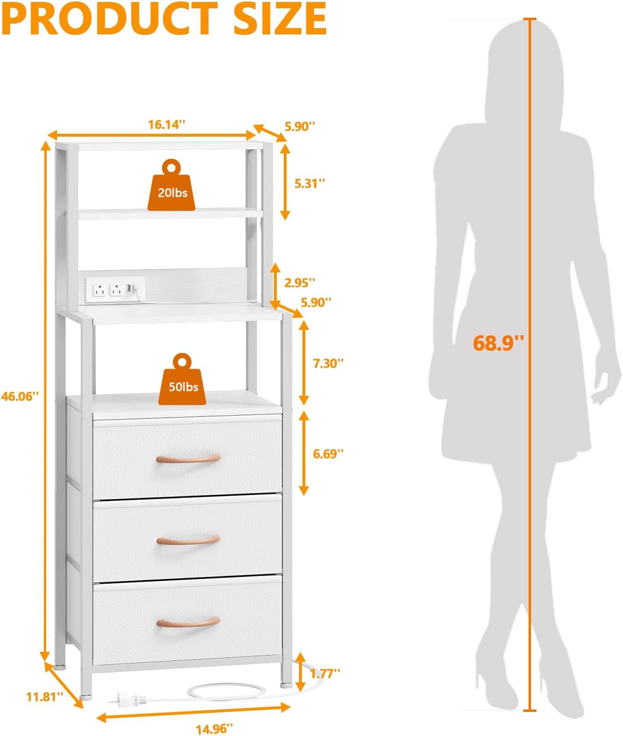 Furnulem White Dresser with Drawers, Vertical Storage Tower Fabric Dresser for Bedroom, Hallway, Entryway, Nursery, Closet Organizer, Nightstand Bedside Table Furniture, Sturdy Steel Frame, Wood Top