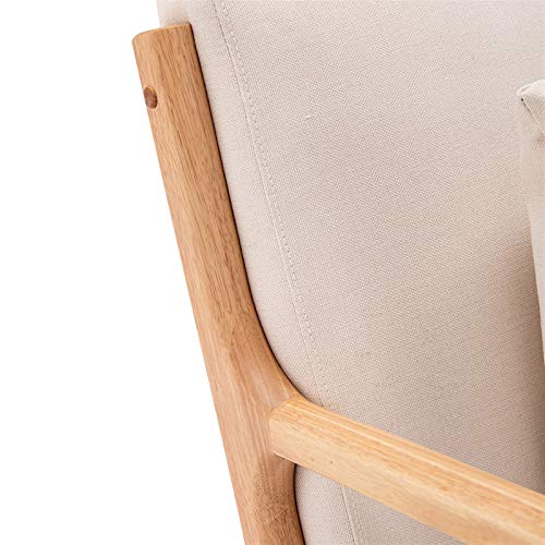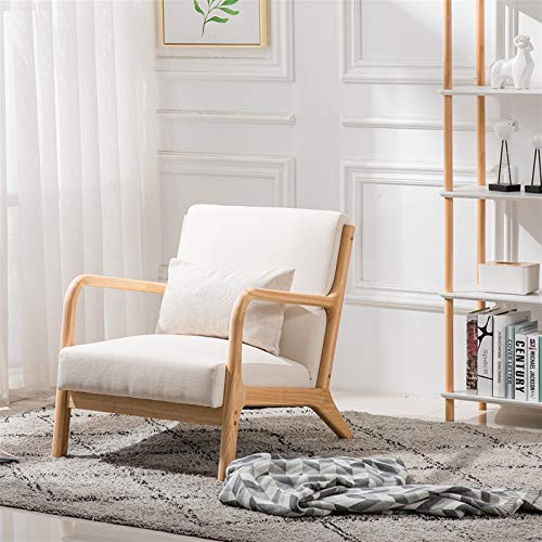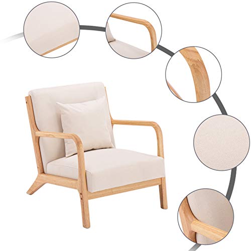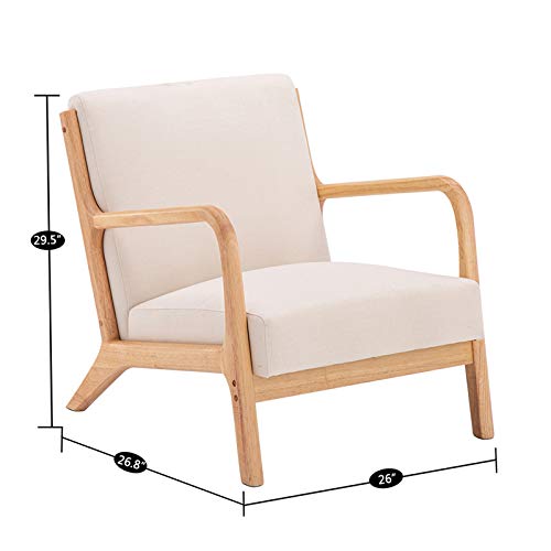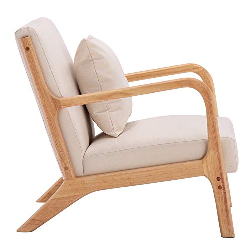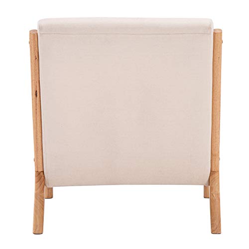 Retro Modern Oak Sofa Furniture Recliner Accent Chair with Solid Wood Legs Armchair for Home Office Study Living Room Vanity Bedroom Theater Seating (Beige Fabric Oak Sofa)
