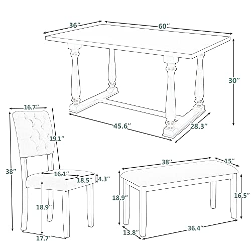 Flieks Kitchen Dining Table Set for 6, Functional Furniture Retro Style Dining Table Set with Extendable Table and 4 Upholstered Chairs for Dining Room and Living Room(Espresso)