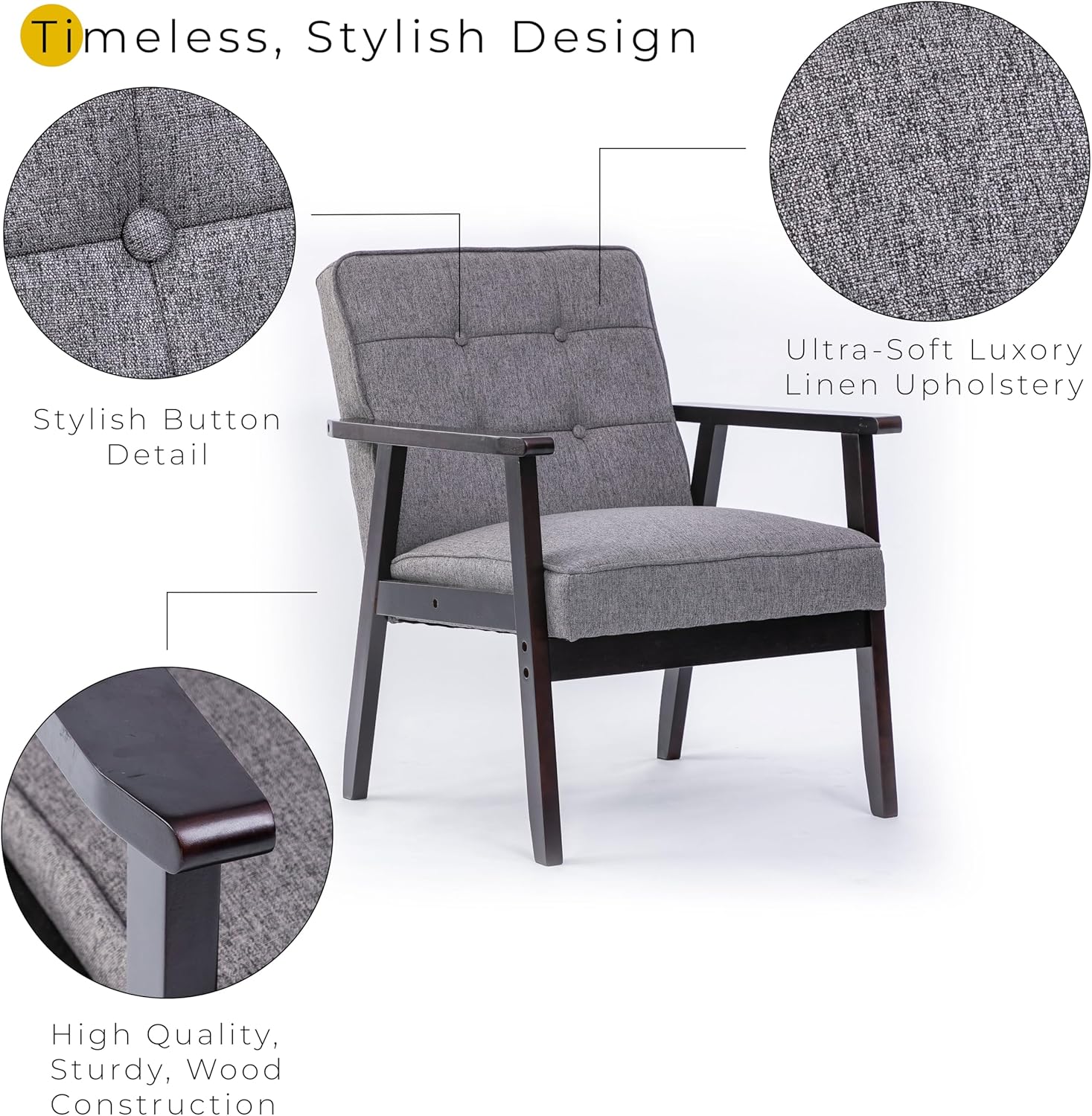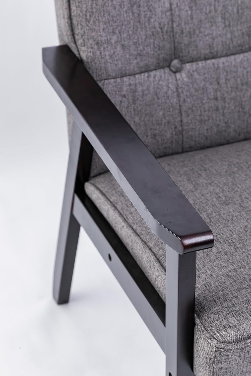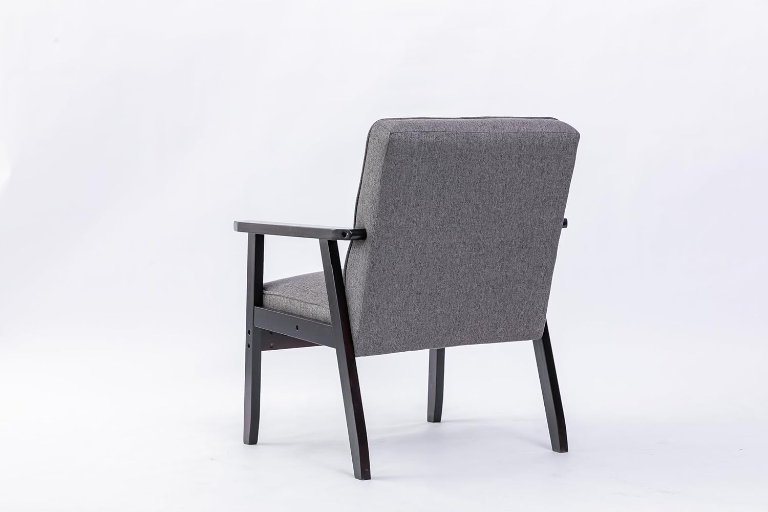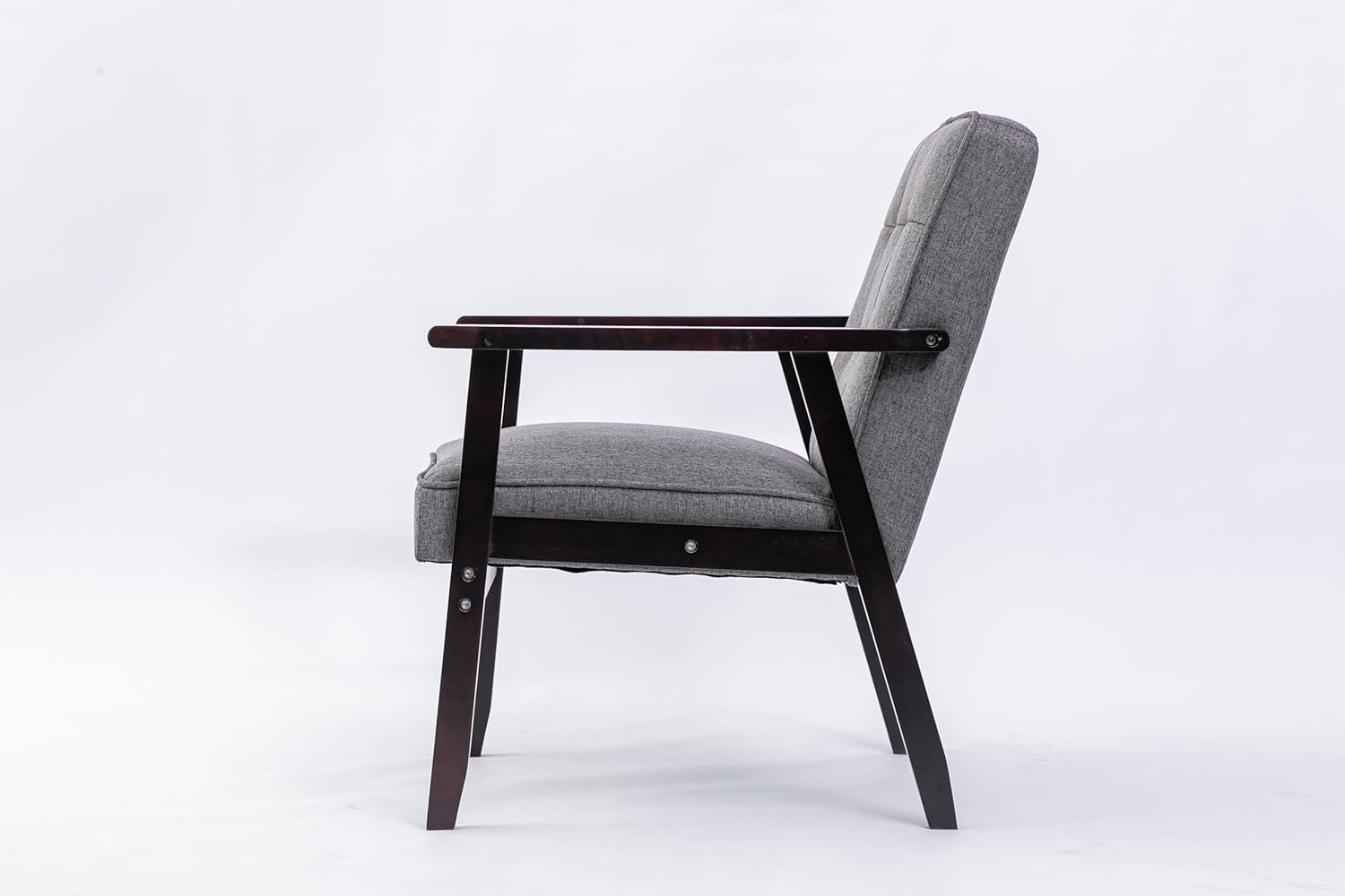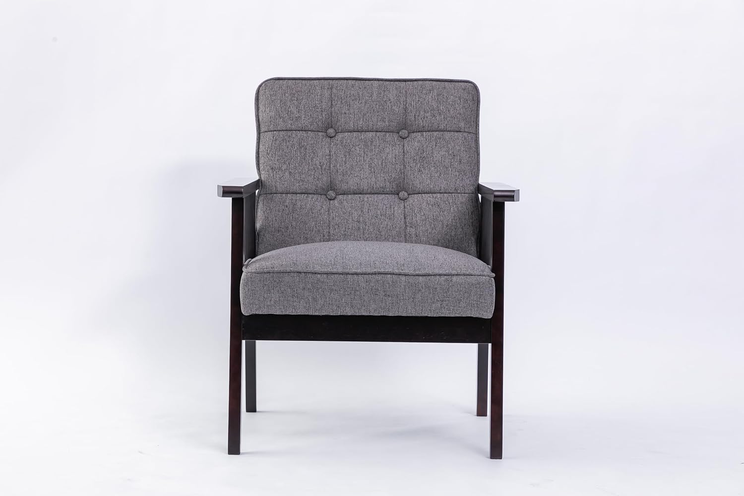 Mid-Century Accent Arm Modern Retro Leisure Chair with Solid Wood Frame Single Sofa for Living Room, Bedroom, Balcony, Studio, 1 Seat, Grey