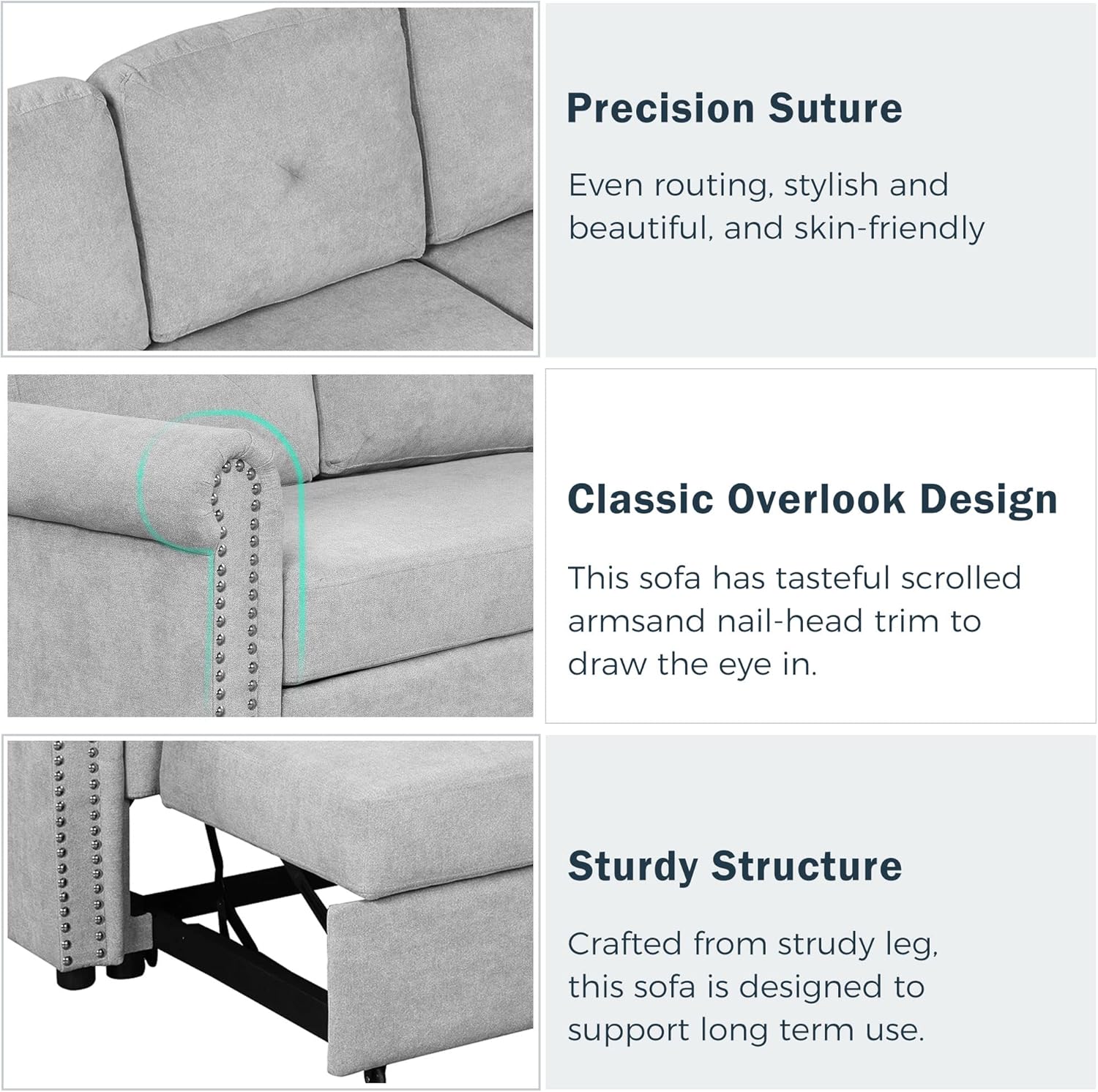 NicBex Pullout Couch Bed Modular Couch Convertible Chair to Bed Modern Convertible Sleeper Sofa Bed with Storage Chaise Suitable for Apartments, Dormitories, Studios, Offices, Gray