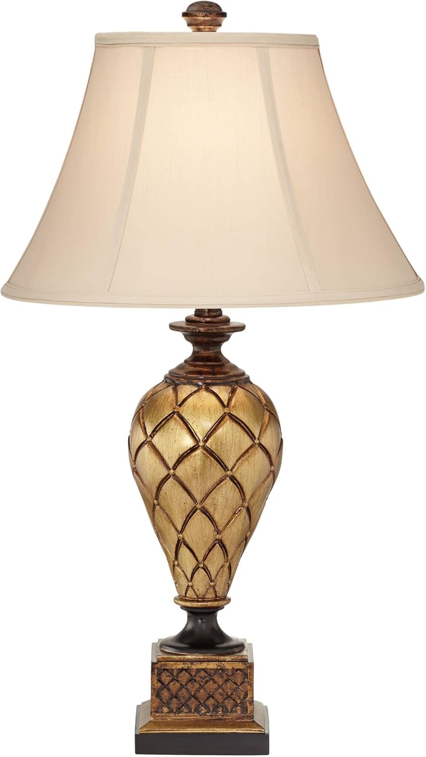 Barnes and Ivy Theron Traditional Style Table Lamp 27.5" Tall Antique Gold Bronze Urn Cream Flared Bell Shade Decor for Living Room Bedroom House Bedside Nightstand Home Office Entryway
