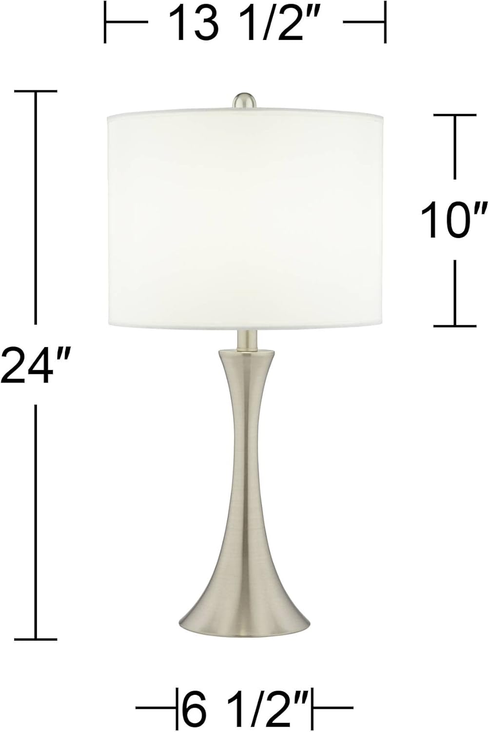 Possini Euro Design Modern Table Lamps 24" Tall Set of 2 Brushed Nickel Silver Metal LED Touch On Off Gray Faux Silk Drum Shade for Bedroom Living Room House Home Bedside Nightstand Office Family