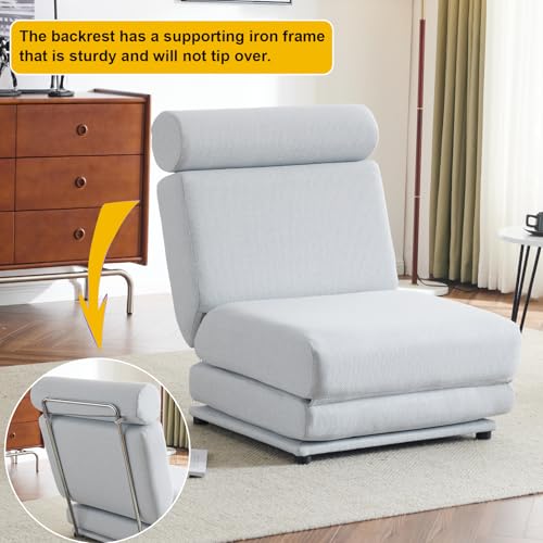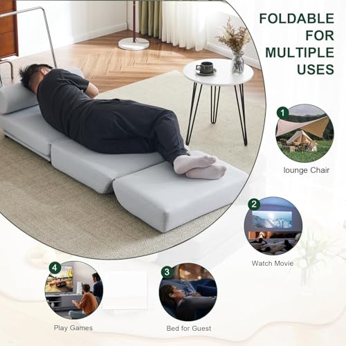INMOZATA Folding Sofa Bed - 4 in 1 Sleeper Chair with Pillow - Portable Fold Out Couch Modern Linen Foldable Single Sofa Bed for Living Room/Dorm/Guest Use/Home Office/Apartment,Dark Grey