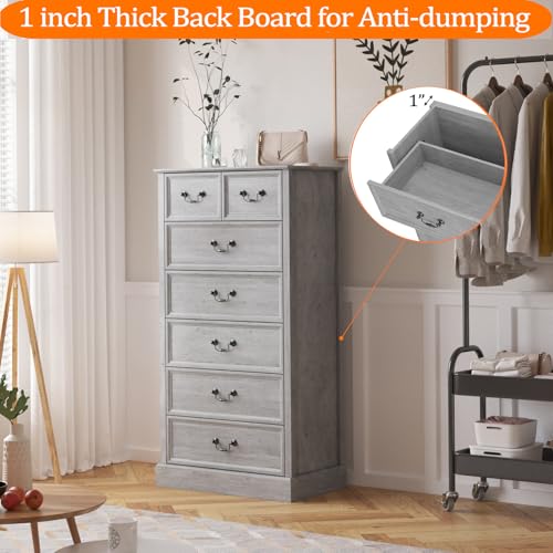 Farmhouse 7 Drawers Dresser for Bedroom, Wood Dresser Chest of Drawers Organizer Storage, Rustic Tall Dresser Chest of Drawer for Living Room, Closet, Hallway Children's Room