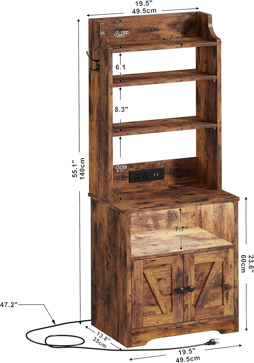 LIKIMIO 55.1" Tall 2-in-1 Nightstand with LED Lights and Charging Station and Bedside Table with Drawer and Shelf, Vintage Brown