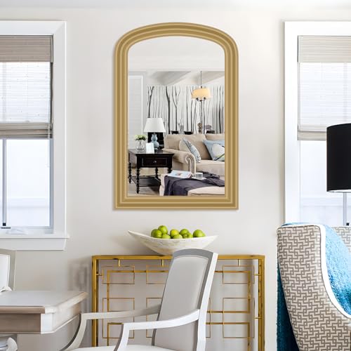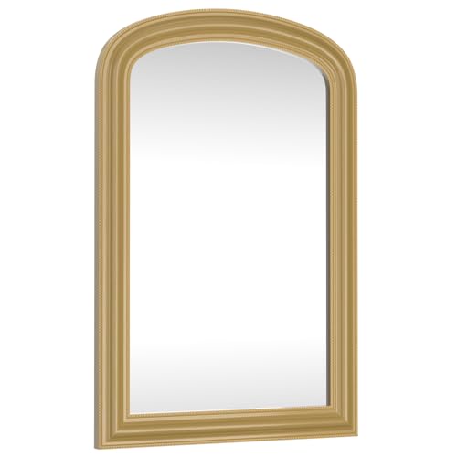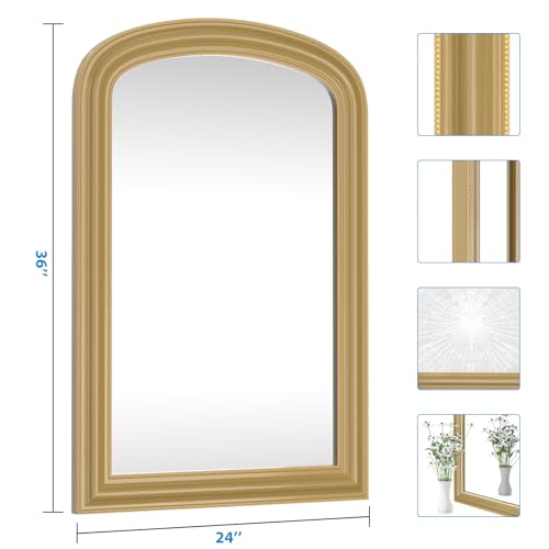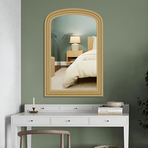 Arch Bathroom Vanity Mirror for Wall Decorative, 40" x 30" Gold Vintage Mirror with Beaded Frame for Wall Decor Farmhouse Wood Frame Mirror for Entryway, Living Room Gold
