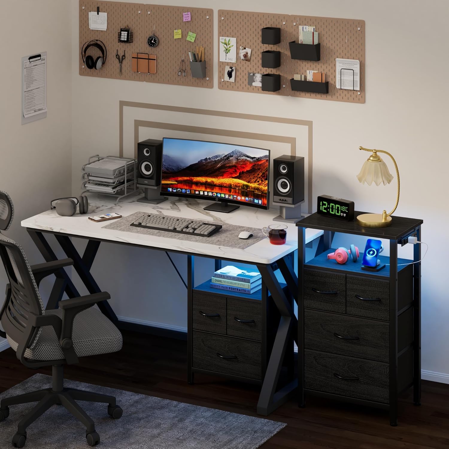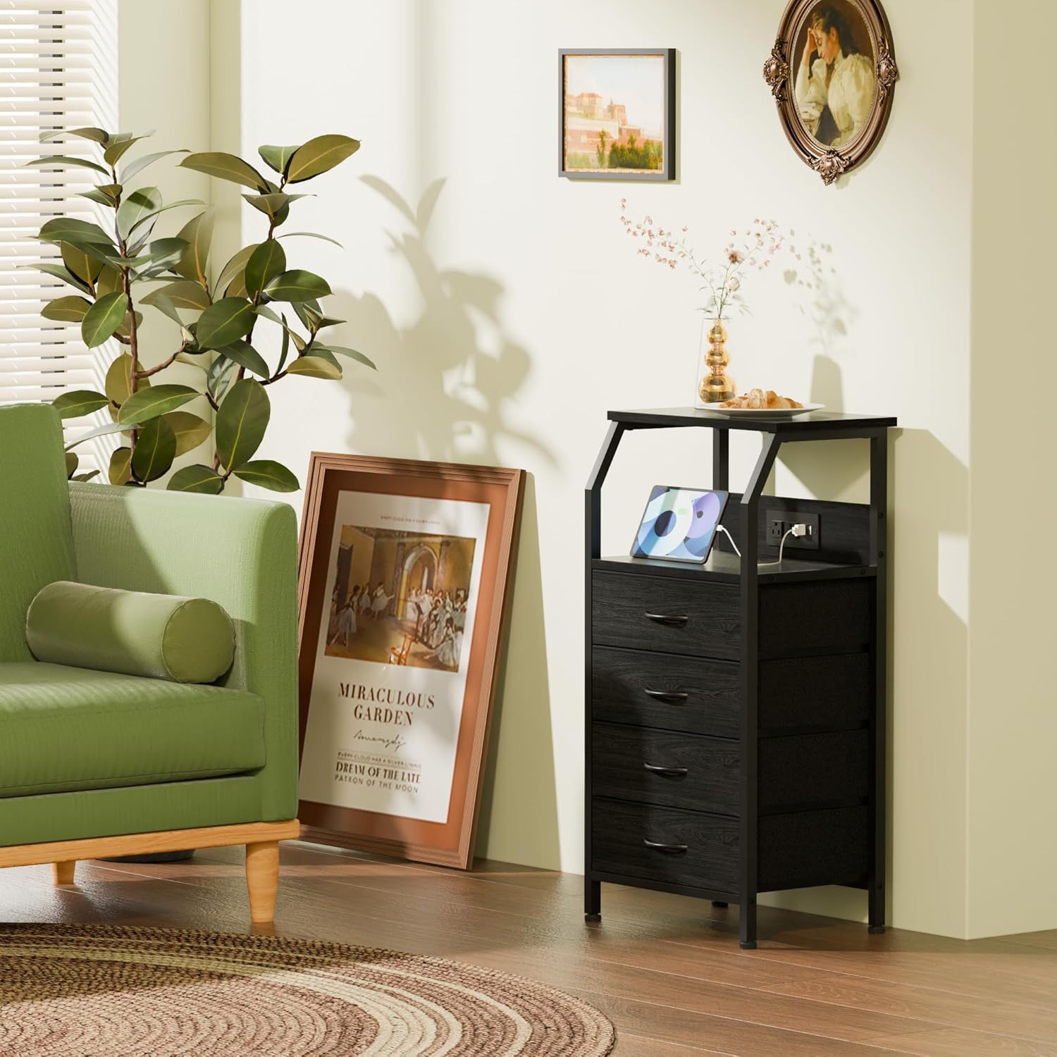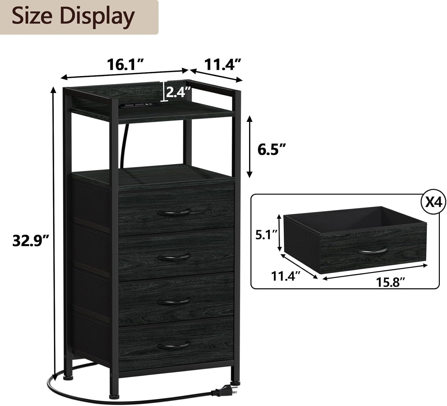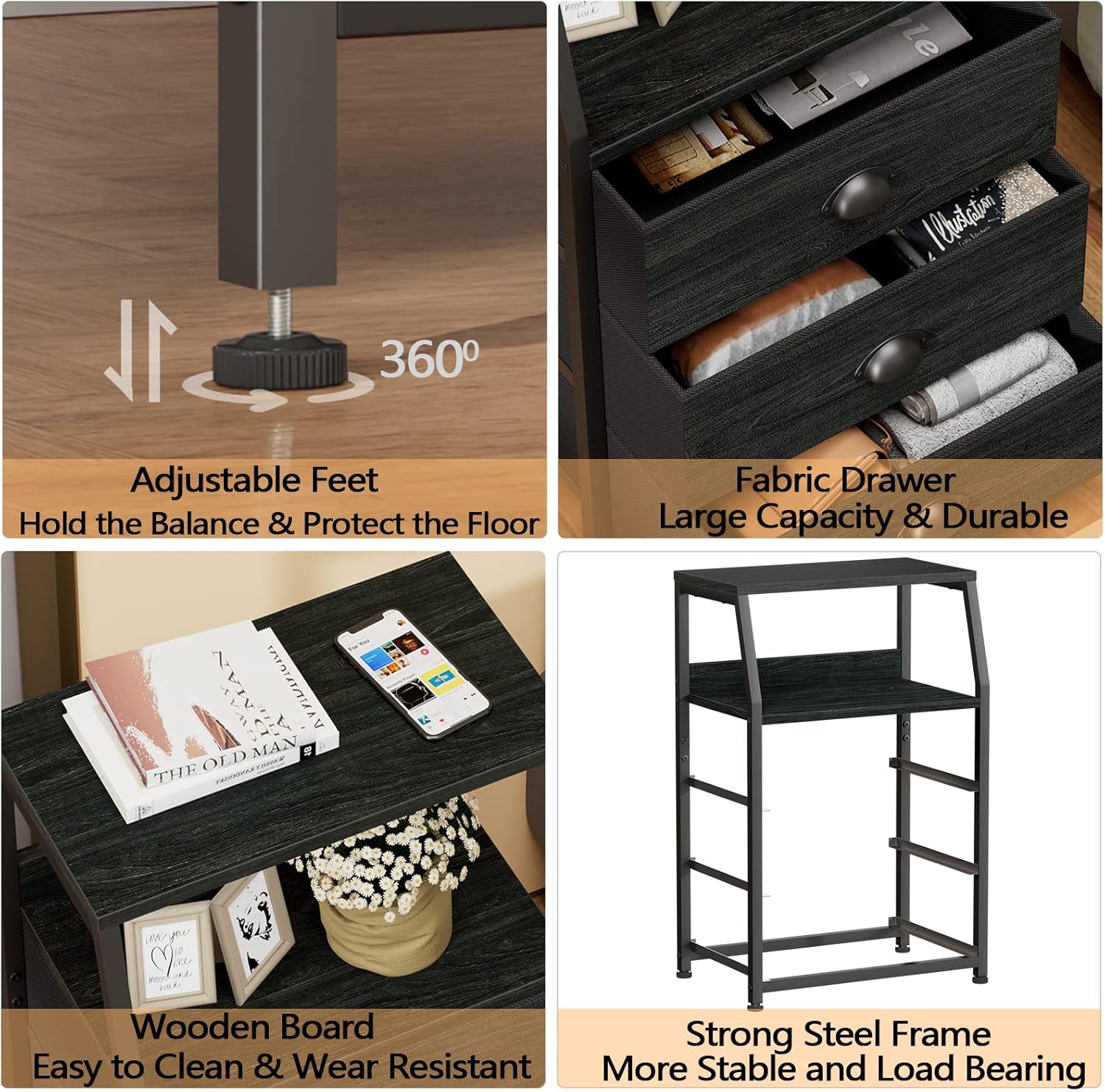 Furnulem Nightstands Set of 2, Small Nightstand with 3 Fabric Storage Drawers+4 Drawer Night Stand with Charging Station