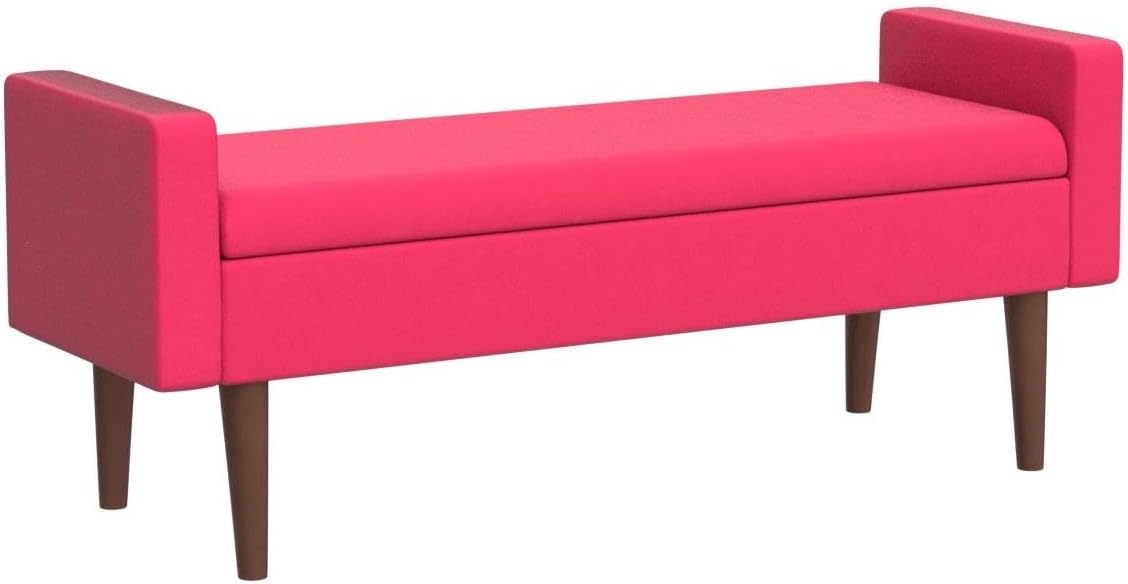HomePop Home Decor | Upholstered Modern Velvet Storage Ottoman Bench | Ottoman Bench with Storage for Living Room & Bedroom | Decorative Home Furniture, Pink Velvet.