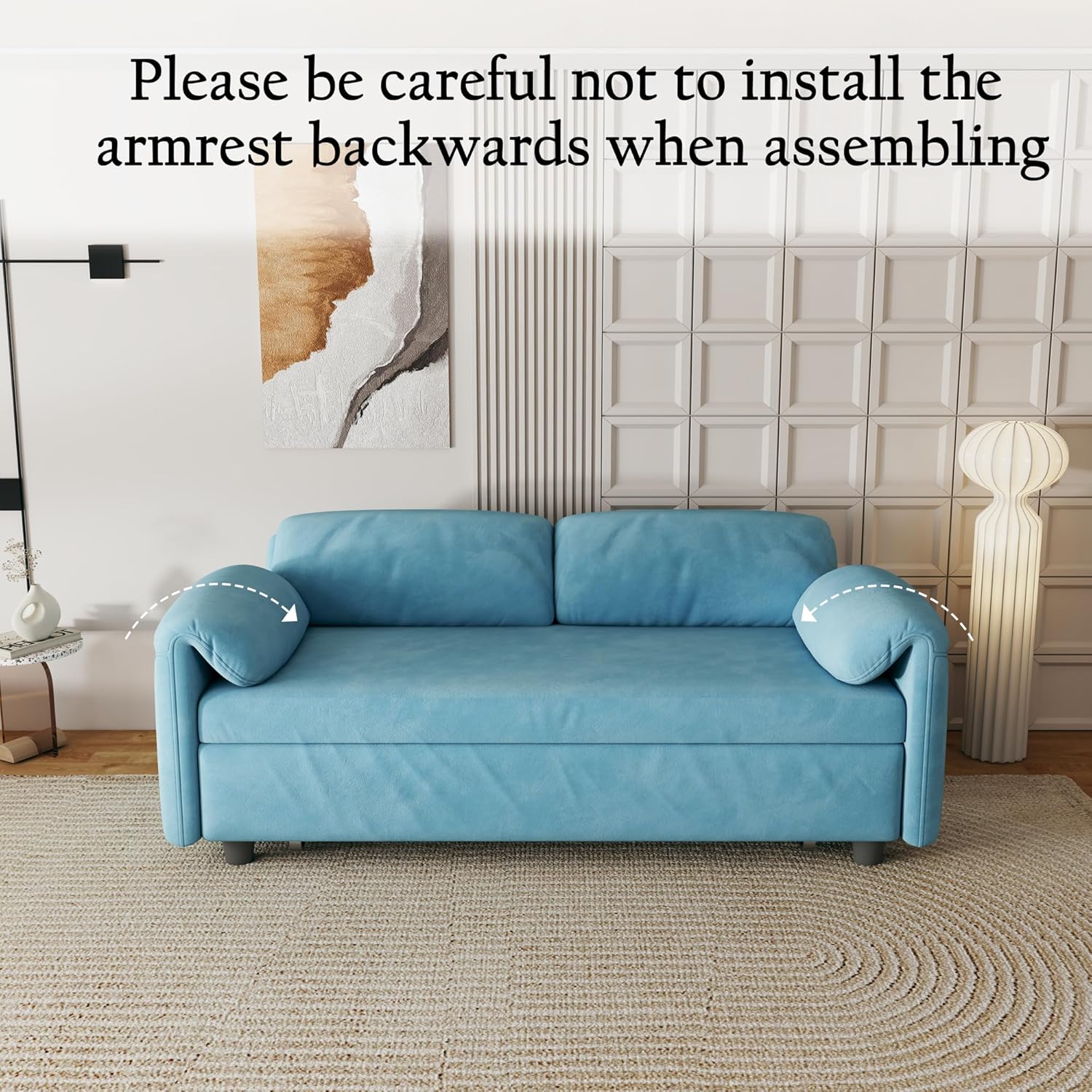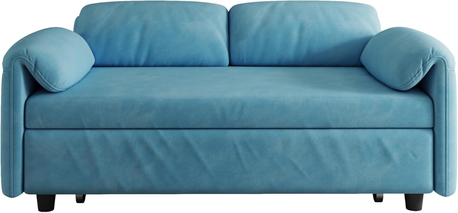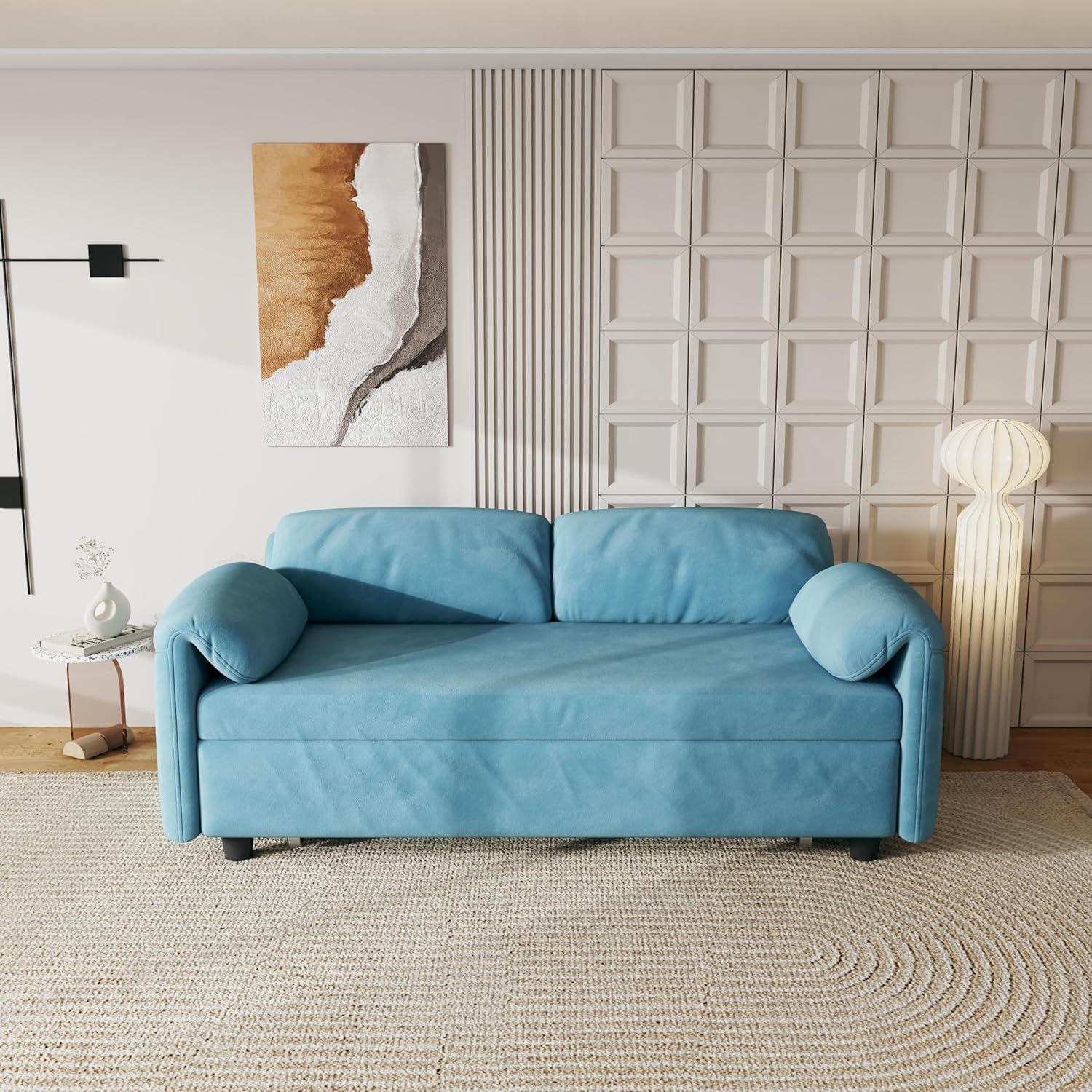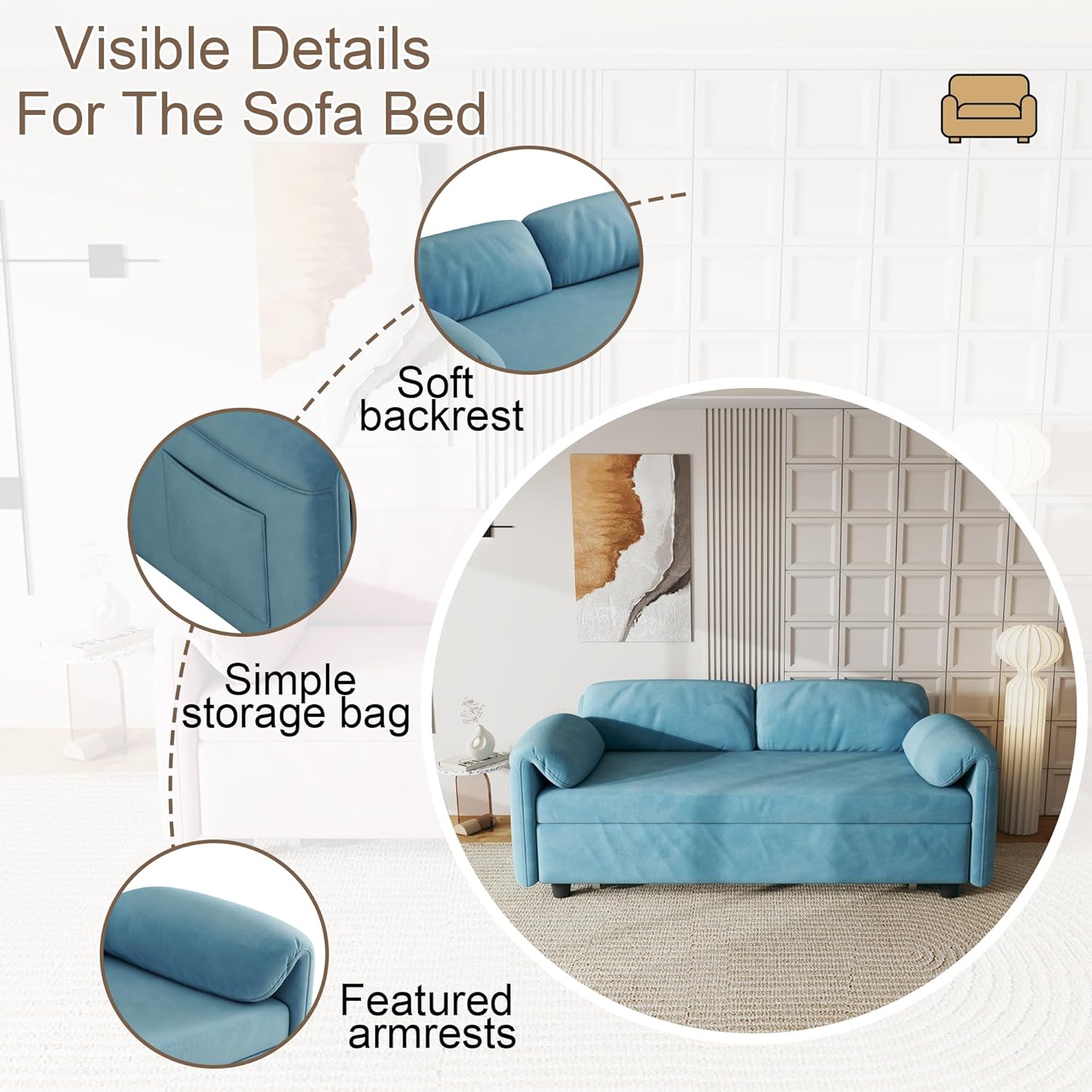 Convertible Sleeper Sofa with Pullout Bed, Upholstered Velvet Mini Couch w/Adjsutable Backrest & Side Pockets, 54" W Modern Sofa&Couches Futon Loveseat Single Recliner for Small Space, Blue