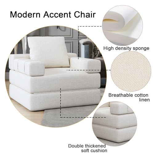 Convertible Sleeper Bed Folding Accent Arm Sofa Chair,Modern Linen Fabric Foldable Single Couch Comfy Thick Pad Floor Mattress with Pillow for Living Room,Guest Room,Office (Beige, 36.6")