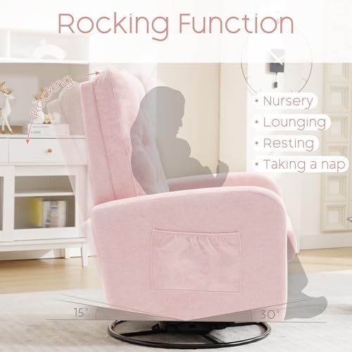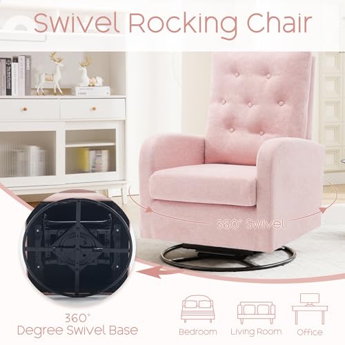 Swivel Rocking Chair Nursery - Glider Modern Accent Chairs Upholstered Linen Rocker Padded Armchair for Indoor Living Room Bedroom Dark Grey