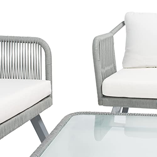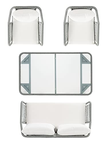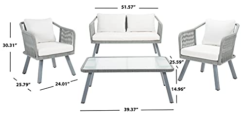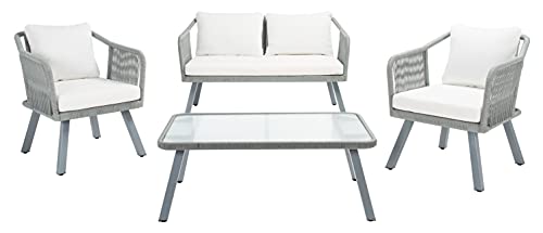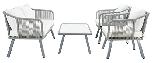 Safavieh Outdoor Collection Torsla Wicker Cushion 4-Piece Rope Patio Backyard Living Set PAT7520B, Black/Beige