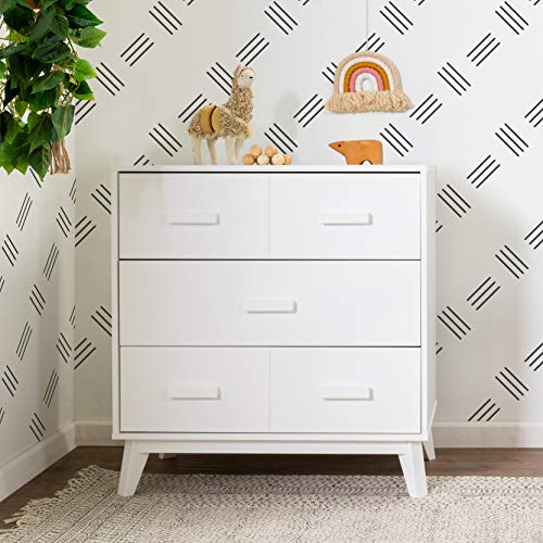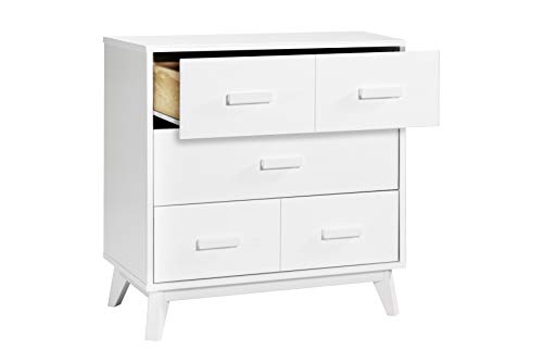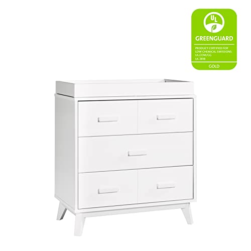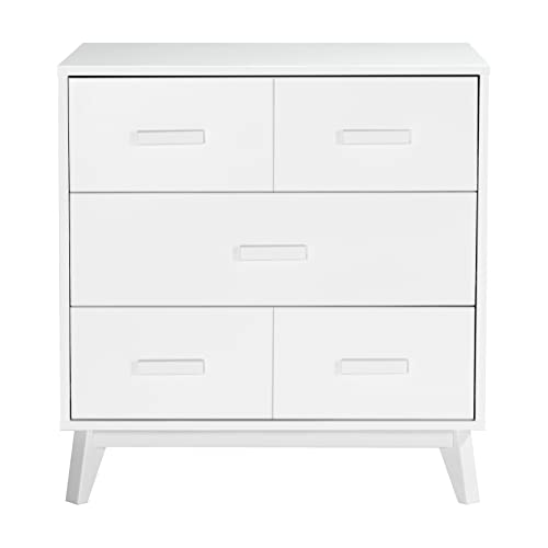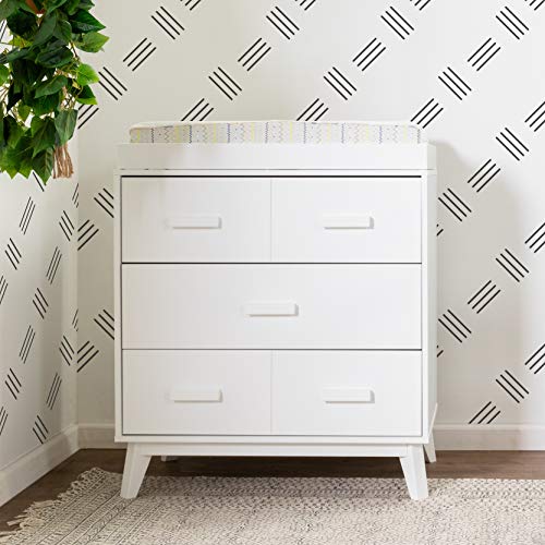 Babyletto Scoot 3-Drawer Changer Dresser with Removable Changing Tray in White and Natural Walnut, Greenguard Gold Certifie