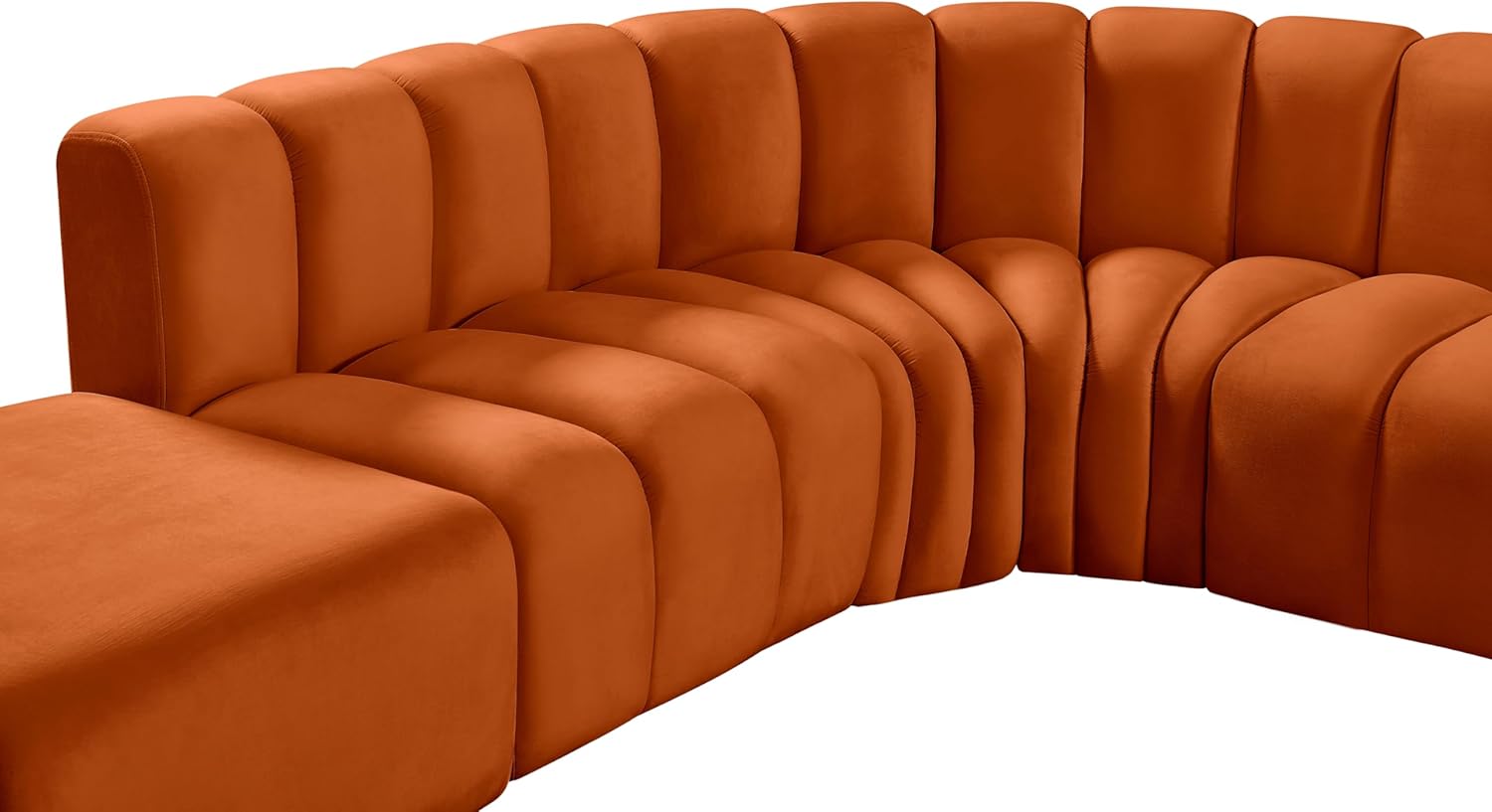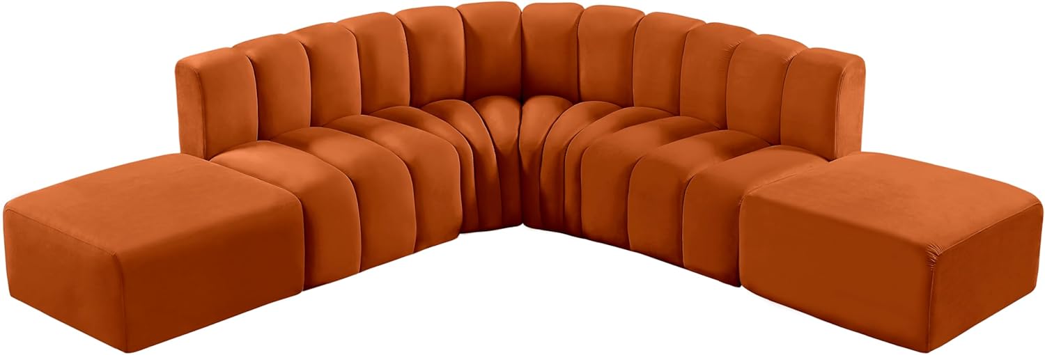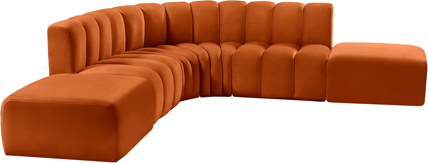 Meridian Furniture Arc Collection Modern | Contemporary Sofa with Soft Velvet, Deep Channel Tufting, Modular Design, 146 W x 76 D x 30 H, Cognac