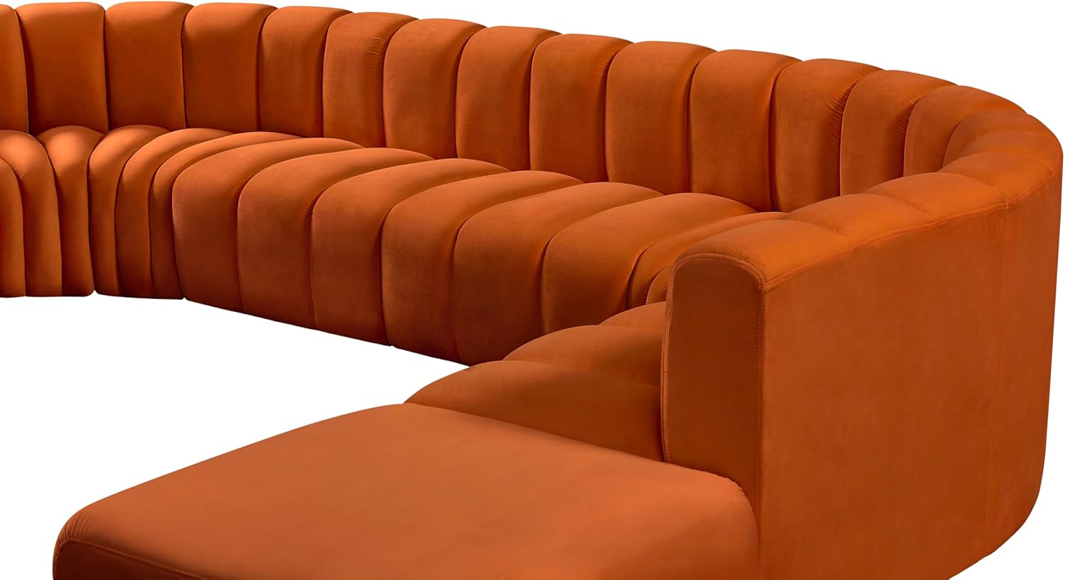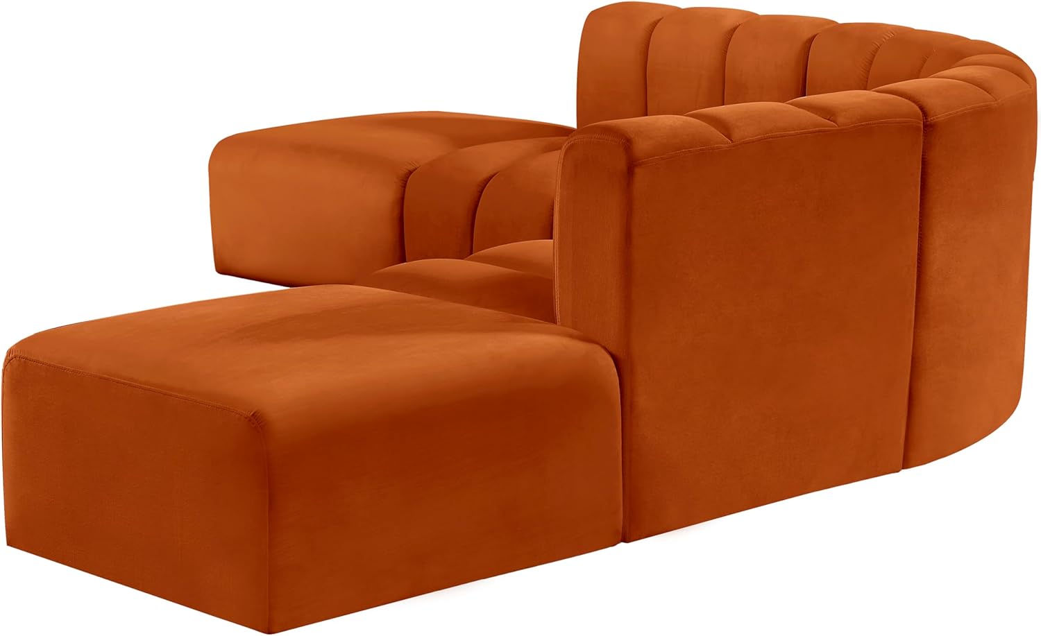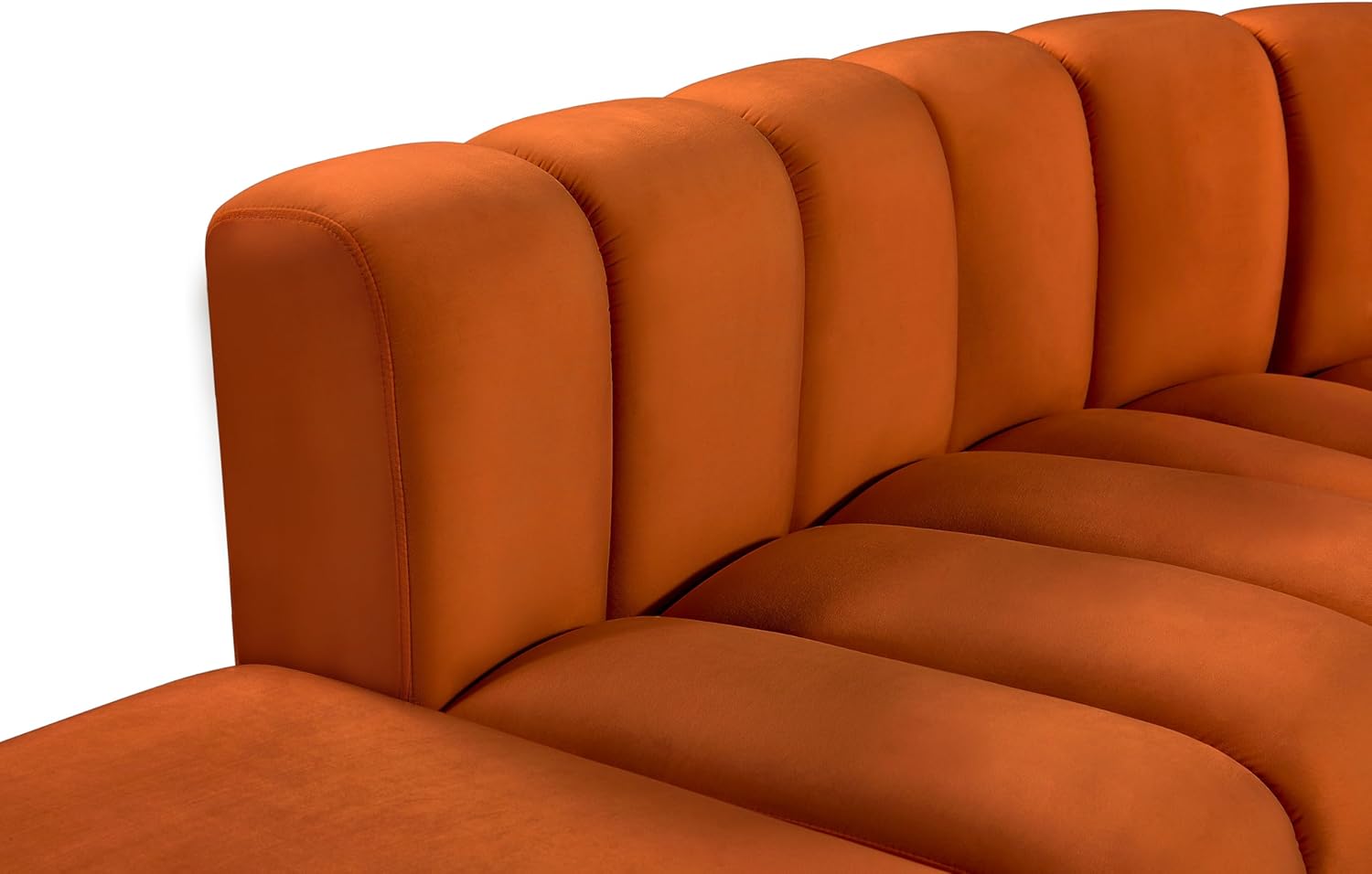 Meridian Furniture Arc Collection Modern | Contemporary Sofa with Soft Velvet, Deep Channel Tufting, Modular Design, 146 W x 76 D x 30 H, Cognac