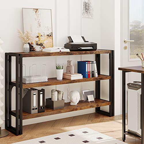 IRONCK Bookshelf Industrial 3 Shelf Bookcase,50.8 inch Wood Storage Shelf with Metal Frame for Living Room, Vintage Brown