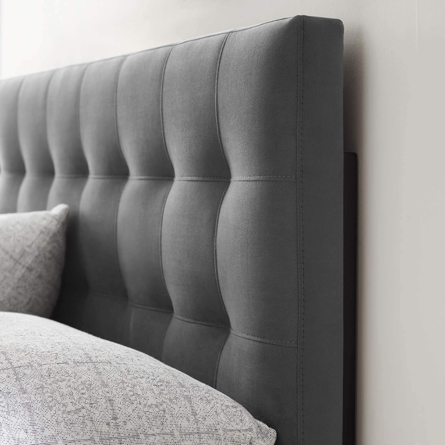Contemporary Modern Urban Designer Bedroom Full Size Tufted Headboard, Velvet Fabric, Grey Gray