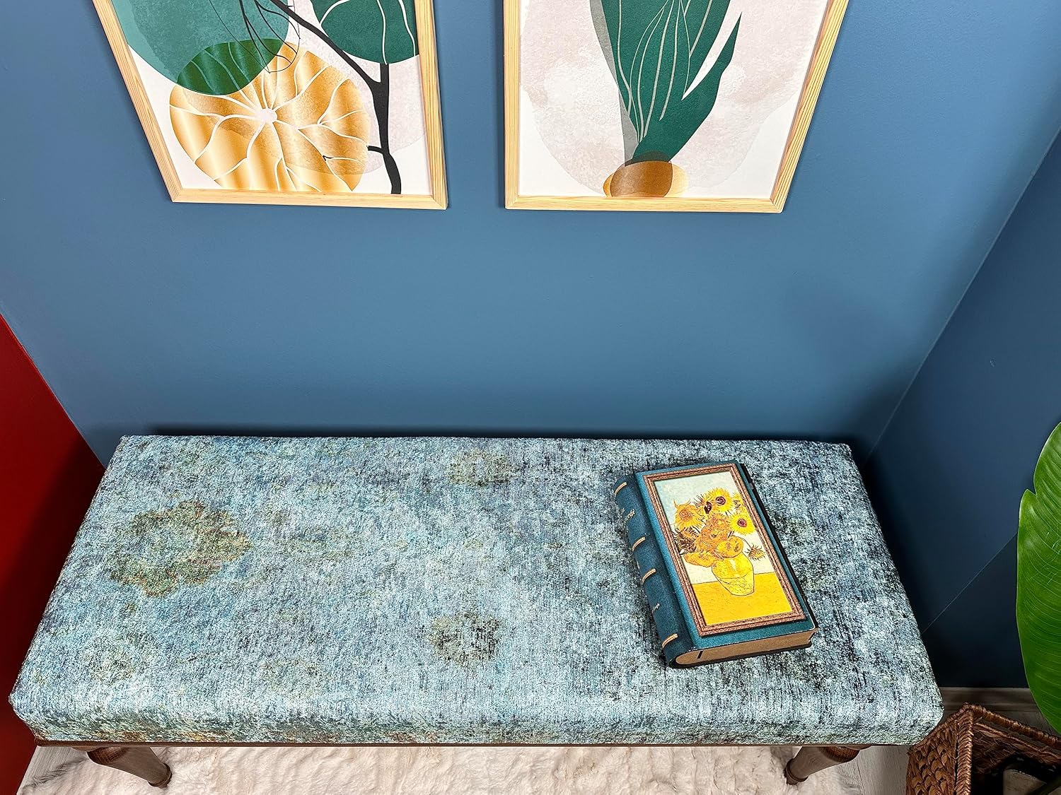 Rustic Upholstered Ottoman Bench for Living Room, Entryway, or Bedroom - Vintage Bohemian Wooden Accent Furniture with Cushioned Seat - Multi-functional Footstool for Modern Home Decor