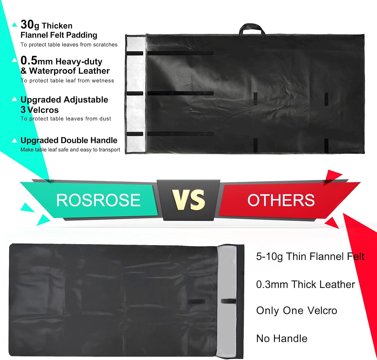 Table Leaf Storage Bag Padded 4 Pack, 51’’L x 28"W 2 Pack Table Leaf Cover with Adjustable Velcro Closure, 51’’L x 28"W 2 Pack Dining Table Leaf Storage Bag, Water-Resistant
