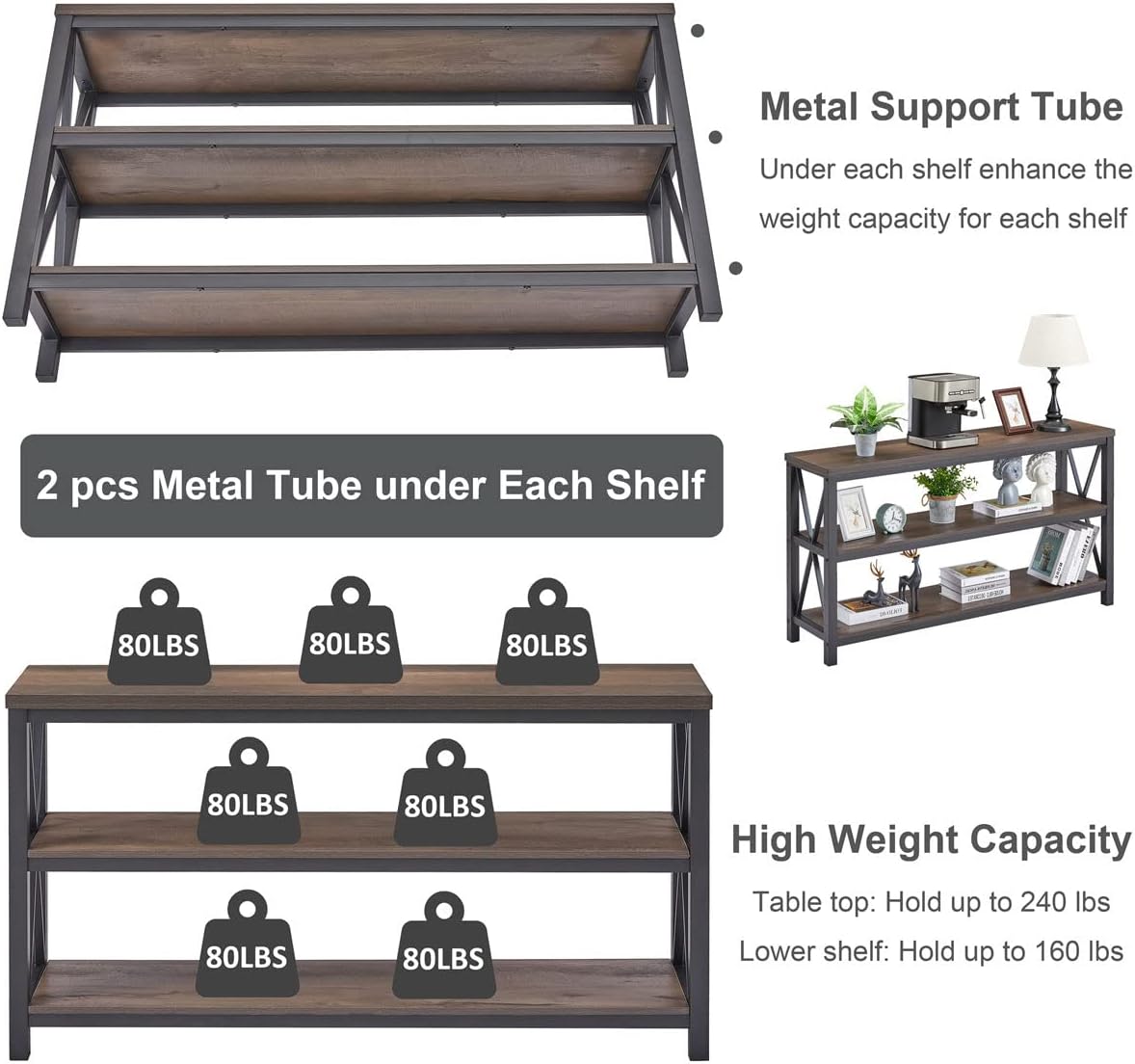 FATORRI Coffee Table and Sofa Table for Home (Walnut Brown)