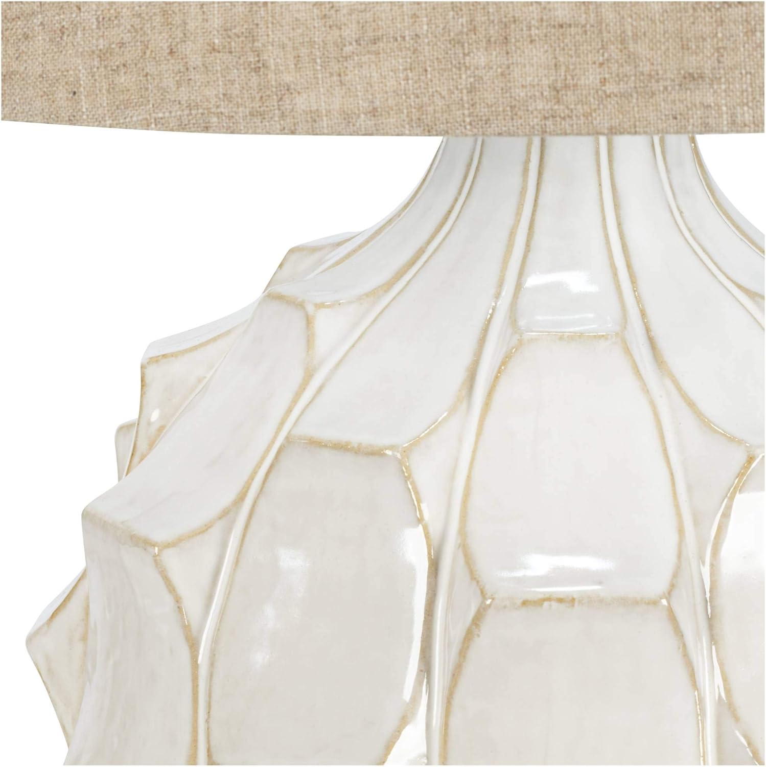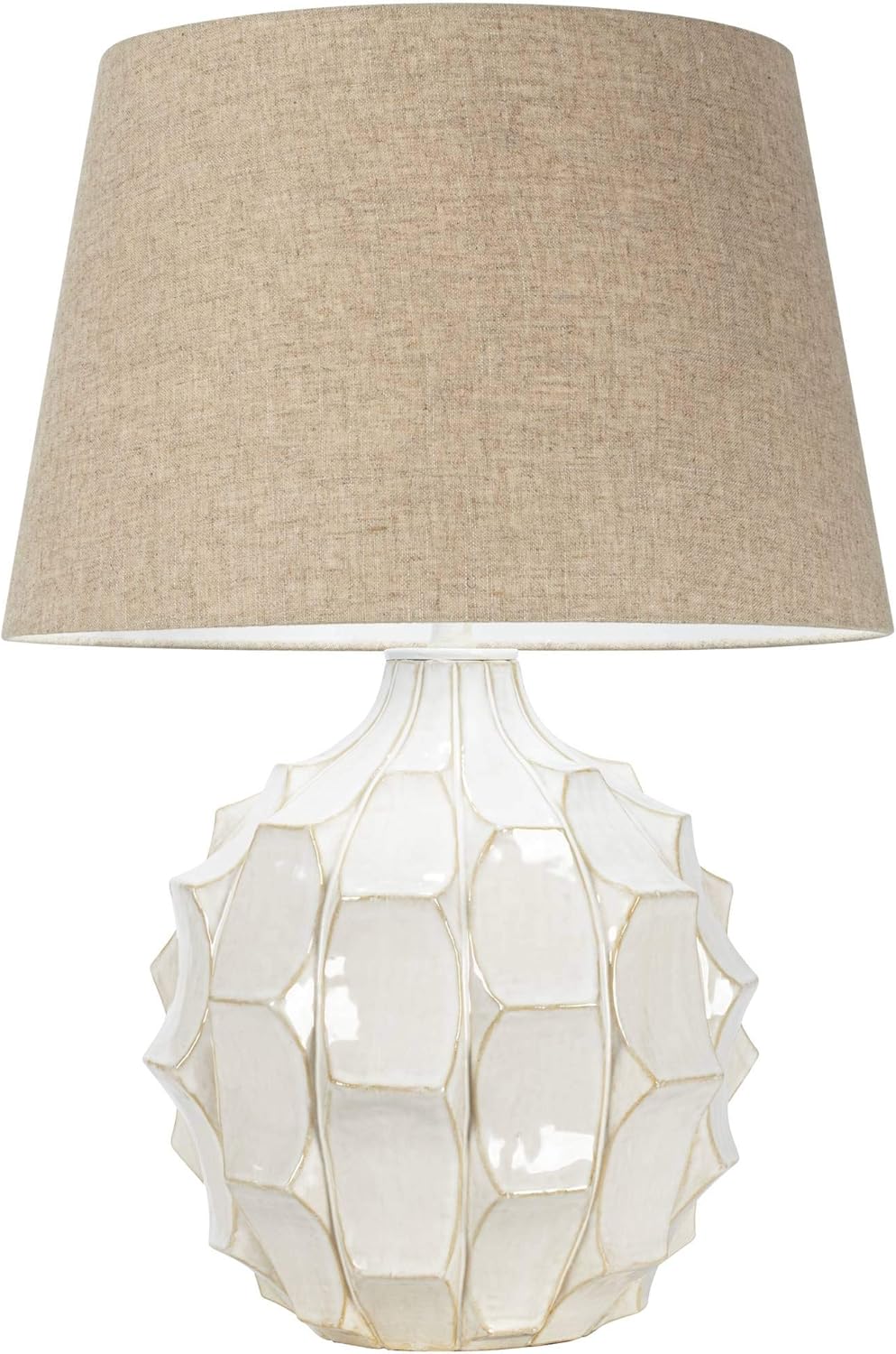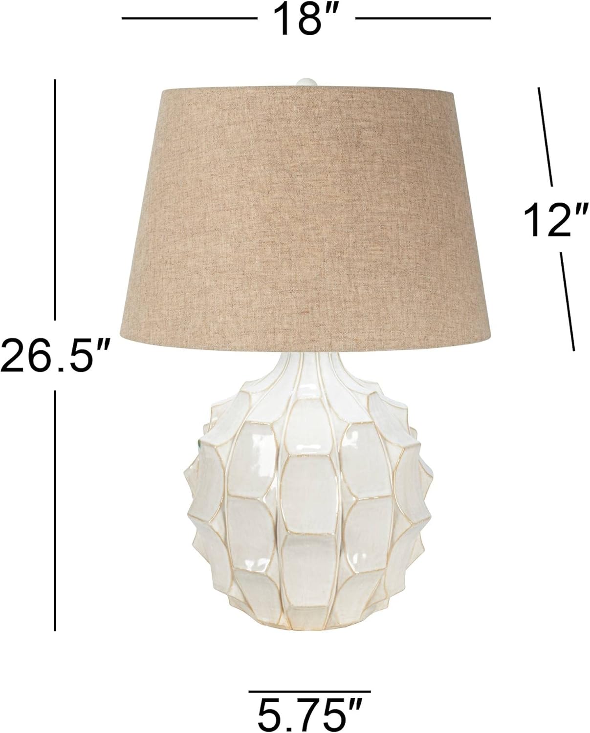 Possini Euro Design Cosgrove Mid Century Modern Table Lamp with Table Top Dimmer 26.5" High White Glazed Ceramic Light Brown Linen Drum Shade for Living Room Bedroom House Bedside Nightstand