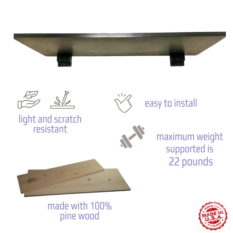 Shelf for Collectors of all kinds, display for action Figures, Solid Pine Wood, Made in USA, Lightweight, Gloss Black, 2 Shelves(Extra Large)