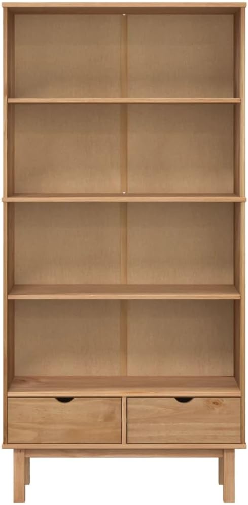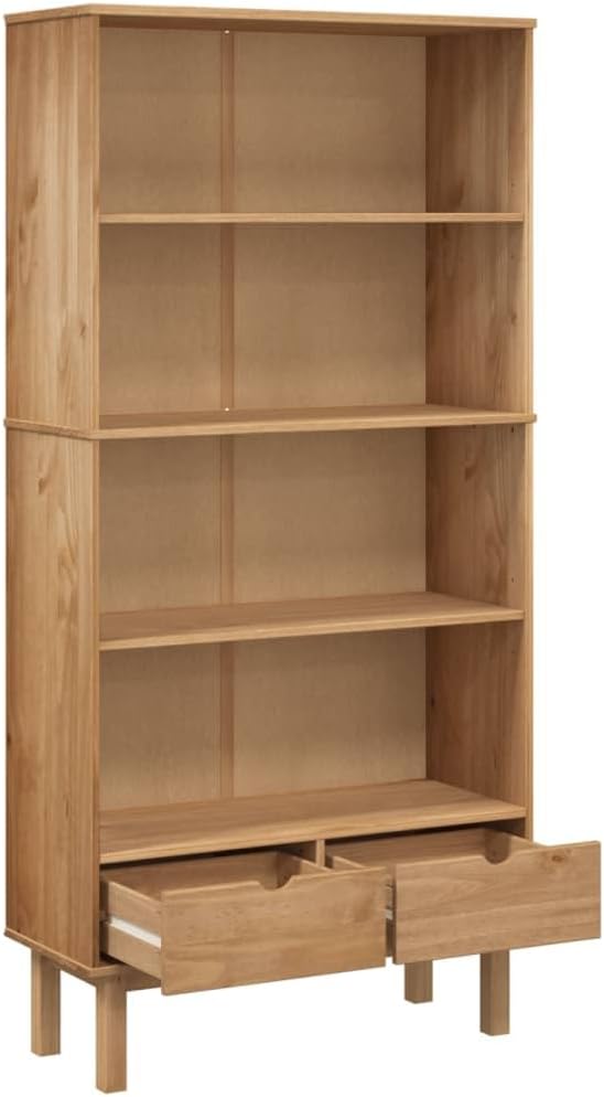 vidaXL OTTA Freestanding Bookcase - Brown Solid Pine Wood, Scandinavian Design, 2 Drawers and 3 Shelves - Suitable for Home Office, Study, Living Room