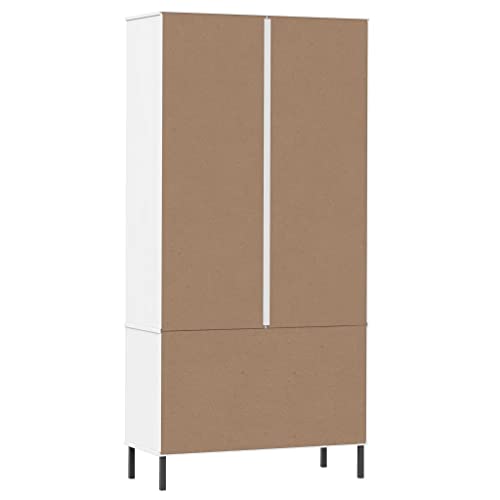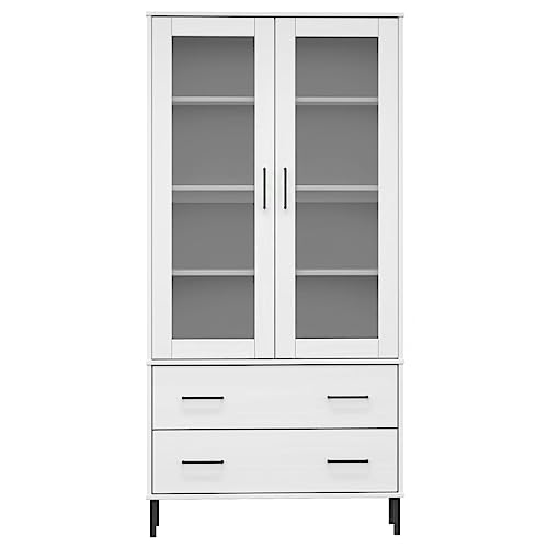 vidaXL Solid Pine Wood Bookcase Brown - Freestanding Bookshelf with Drawers and Metal Legs - 33.5"x13.8"x67.9"