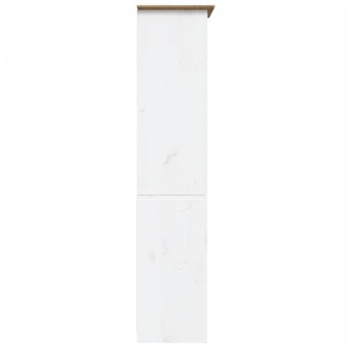 Set of Two Tall Solid Pine Wood Bookcases - Slim, Narrow, and Tall, Perfect for Office or Living Room (White/Pine Top)