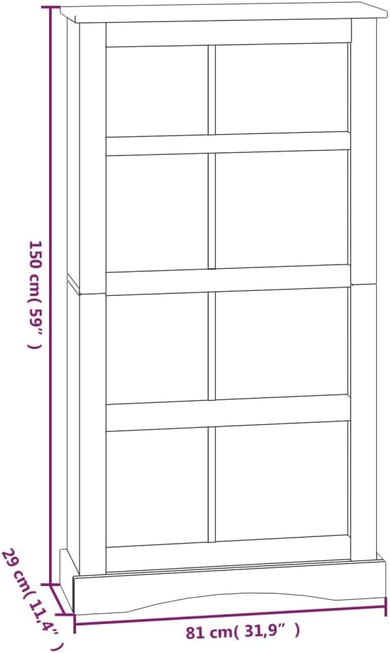 4-Tier Bookcase Mexican Pine Corona Range | Wooden 4-Shelf Bookshelf | Rustic Wood Bookcase for Bedroom Living Room Home Office | Brown Solid Waxed Pinewood 31.9" x 11.4" x 59.1"