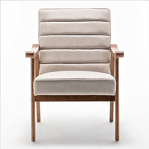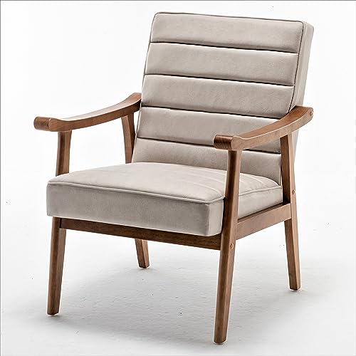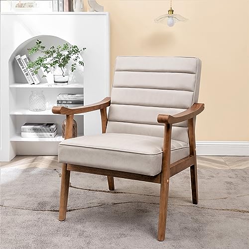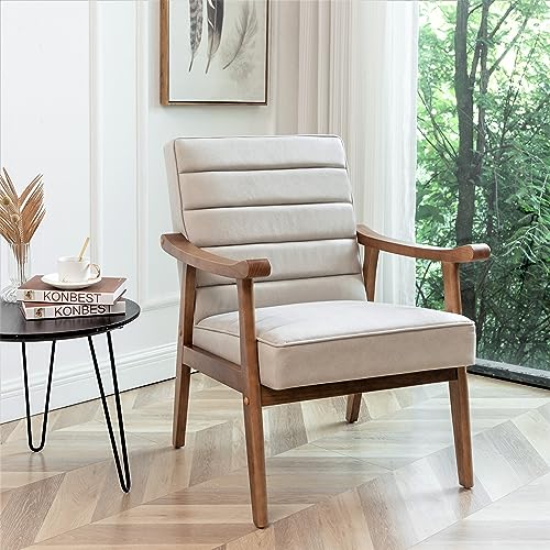US Pride Furniture Distinctive Mid Century Modern Accent Chair with Open-Framed Armchair Design, Plush Foam, Leather-Look Microfiber Seat and Back Cushions, Brown