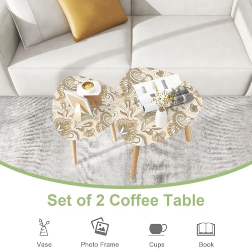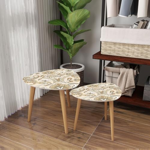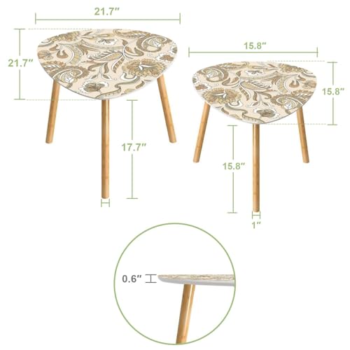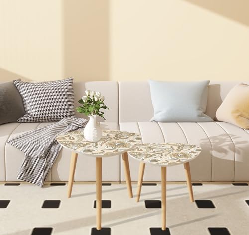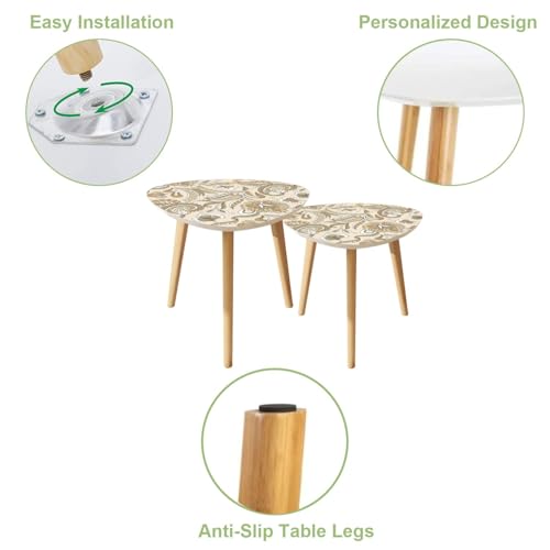 Triangle Nesting Coffee Table Set of 2 Scandinavian seamless doodle pattern vintage leaves sketch for Ideal Modern Minimalist Side Table Small End Table Leisure Tea Table Living room Bedroom Office