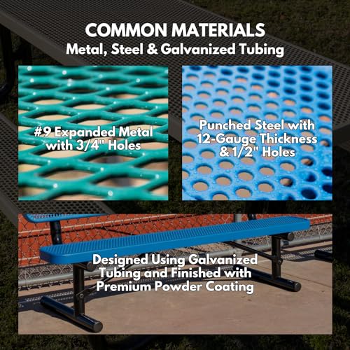 Coated Outdoor Furniture Heavy-Duty Outdoor Bench Thermoplastic Coated, Expanded Metal, Commercial-Grade Seating, Made in America (Surface without Back, 6 Ft, Brown)