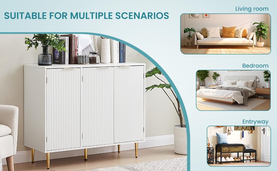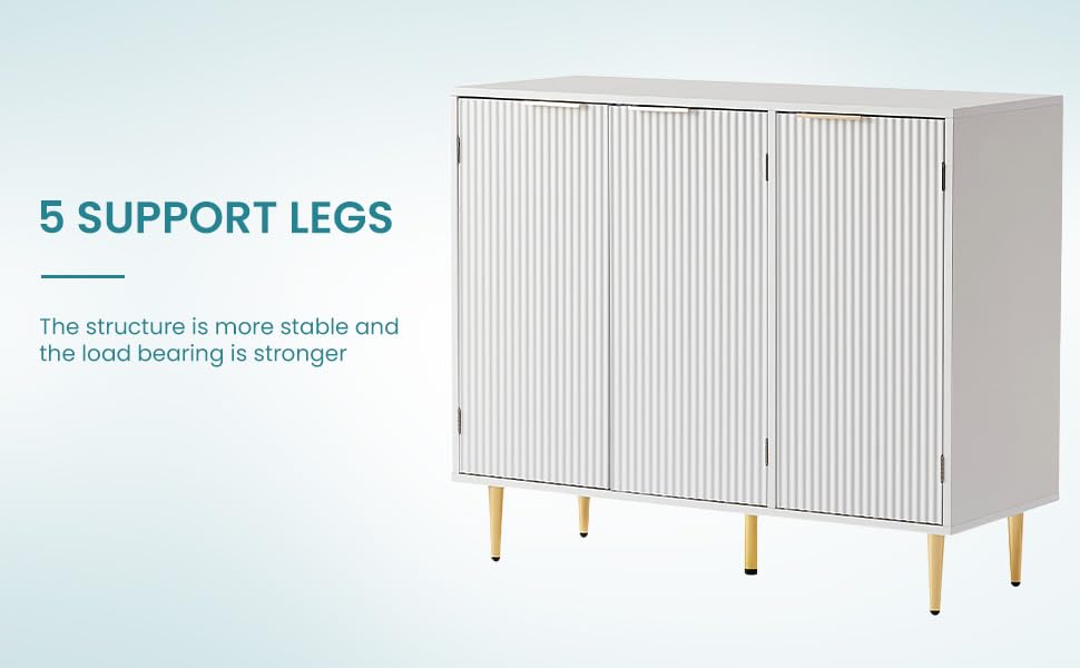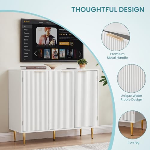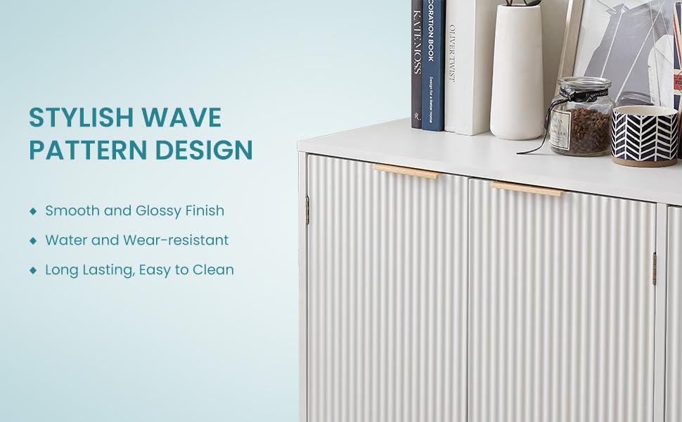 Scandinavian Sideboard Buffet Cabinet with Adjustable Shelves, 4 Compartments, Wave Texture and Rose Gold Design, Engineered Wood and Metal Construction for Living Room, Dining Room, and Hallway